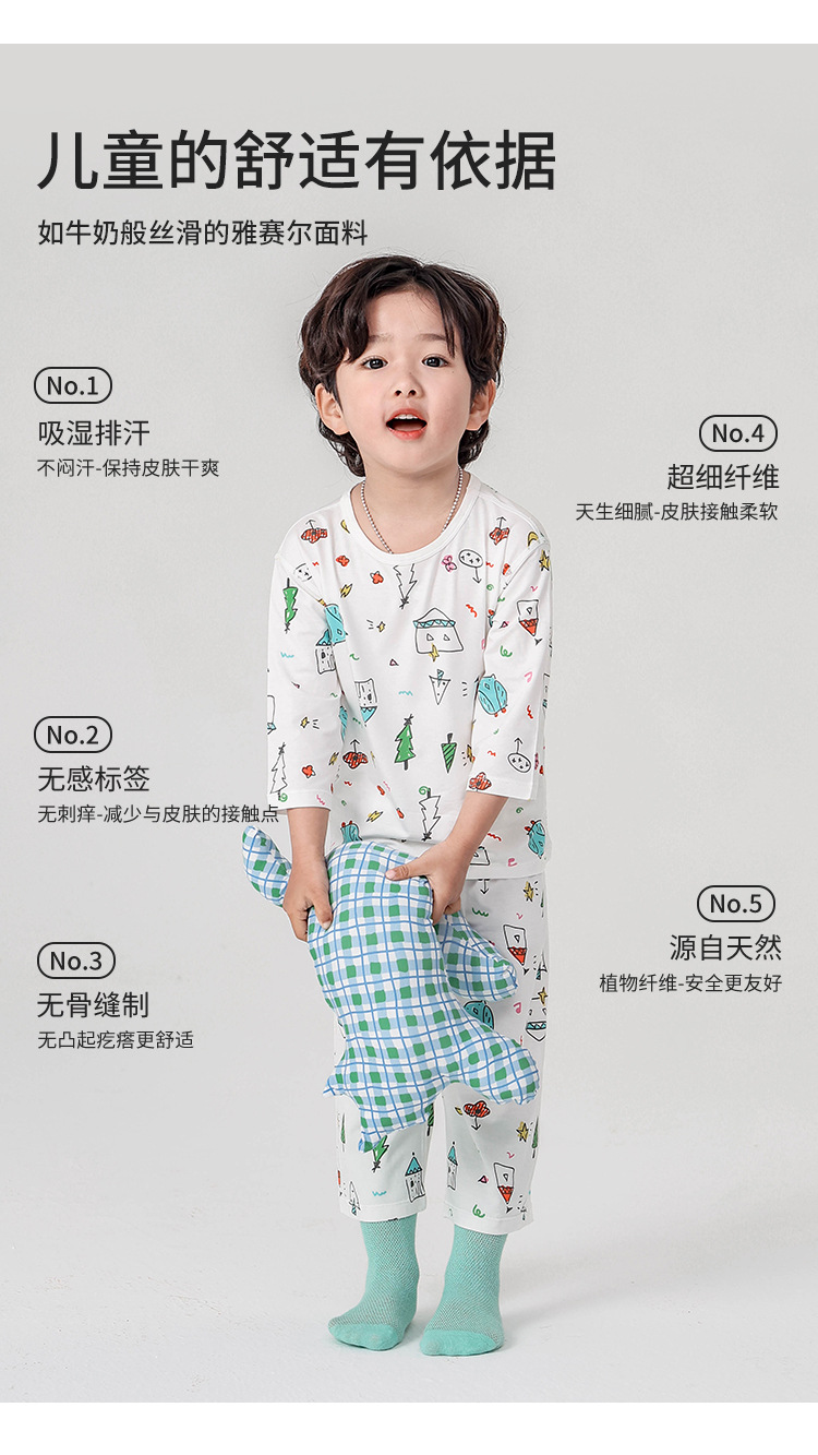 어린이 홈웨어 ZYZ 디자이너 봄과 여름 야셀 3/4 소매 속옷 에어컨 아동용 잠옷스토어 가기