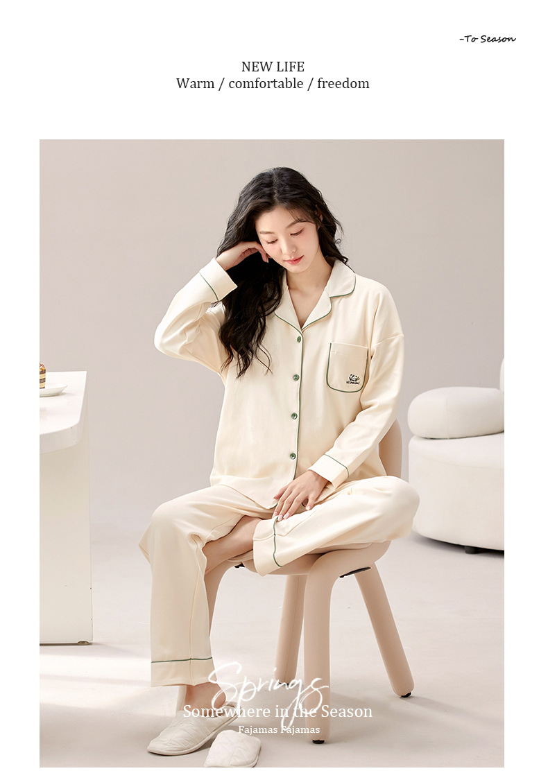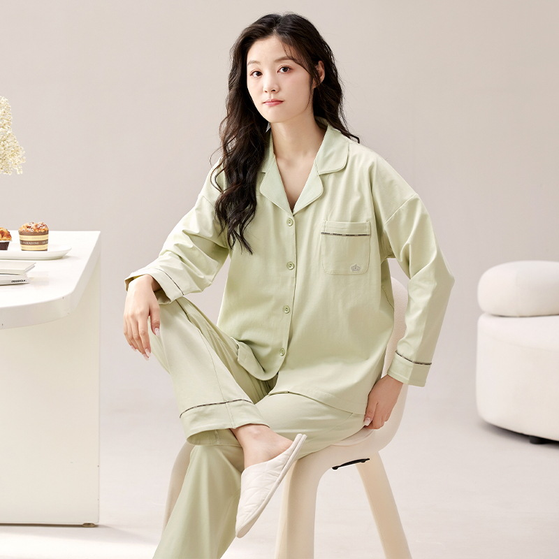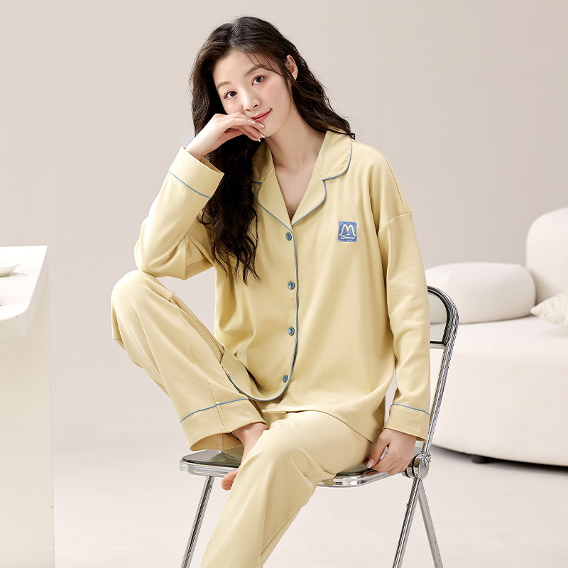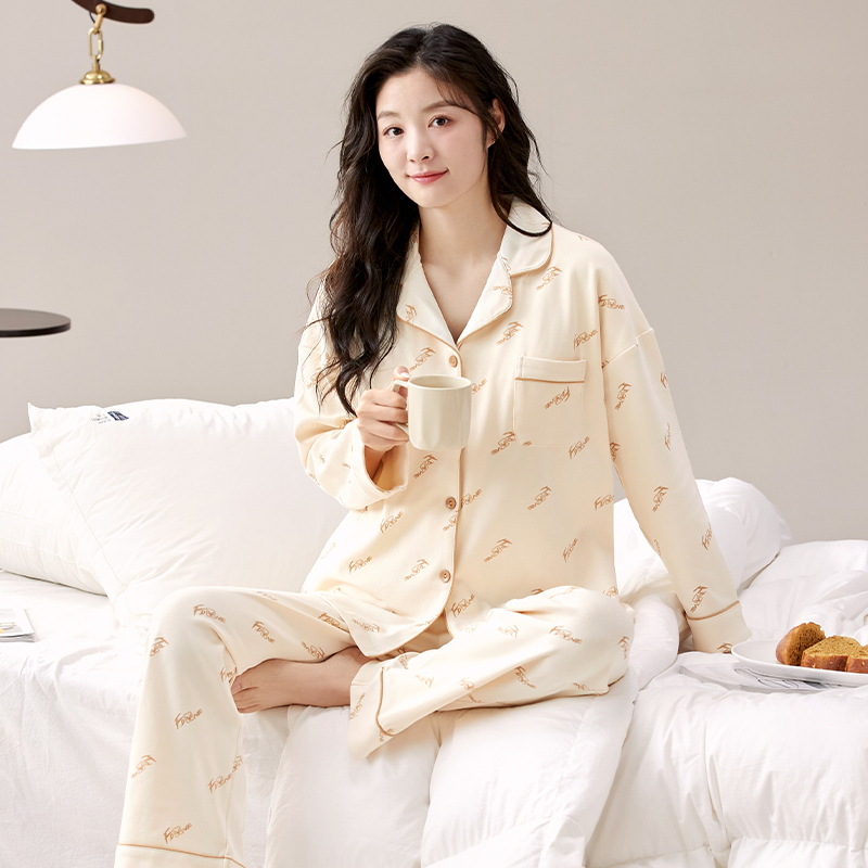 퓨어 코튼 파자마 여성의 봄과 가을 긴 소매 2024 새로운 여성의 간단한 플러스 사이즈 여름 홈 웨어 세트 외부에서 착용 할 수 있습니다.