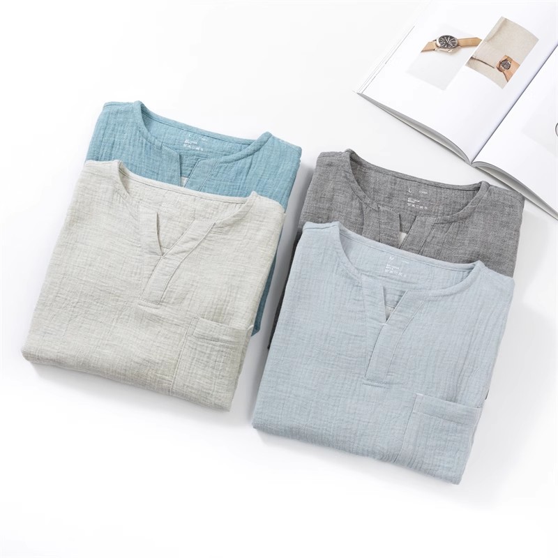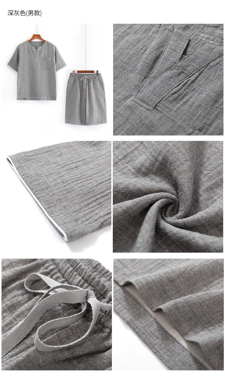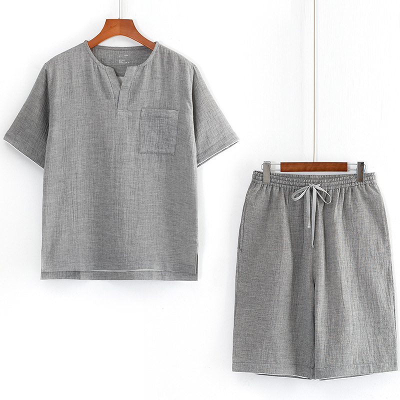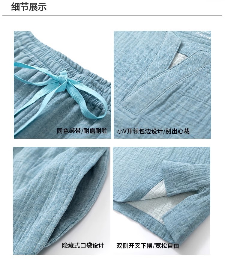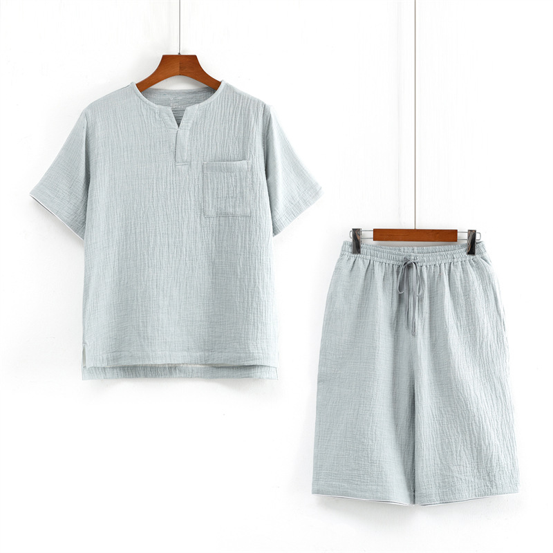 MUJI 일본식 Nightwear 남성용 All Cotton Crepe 반팔 반바지 면 더블 레이어 원사 마모