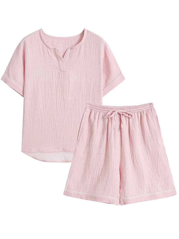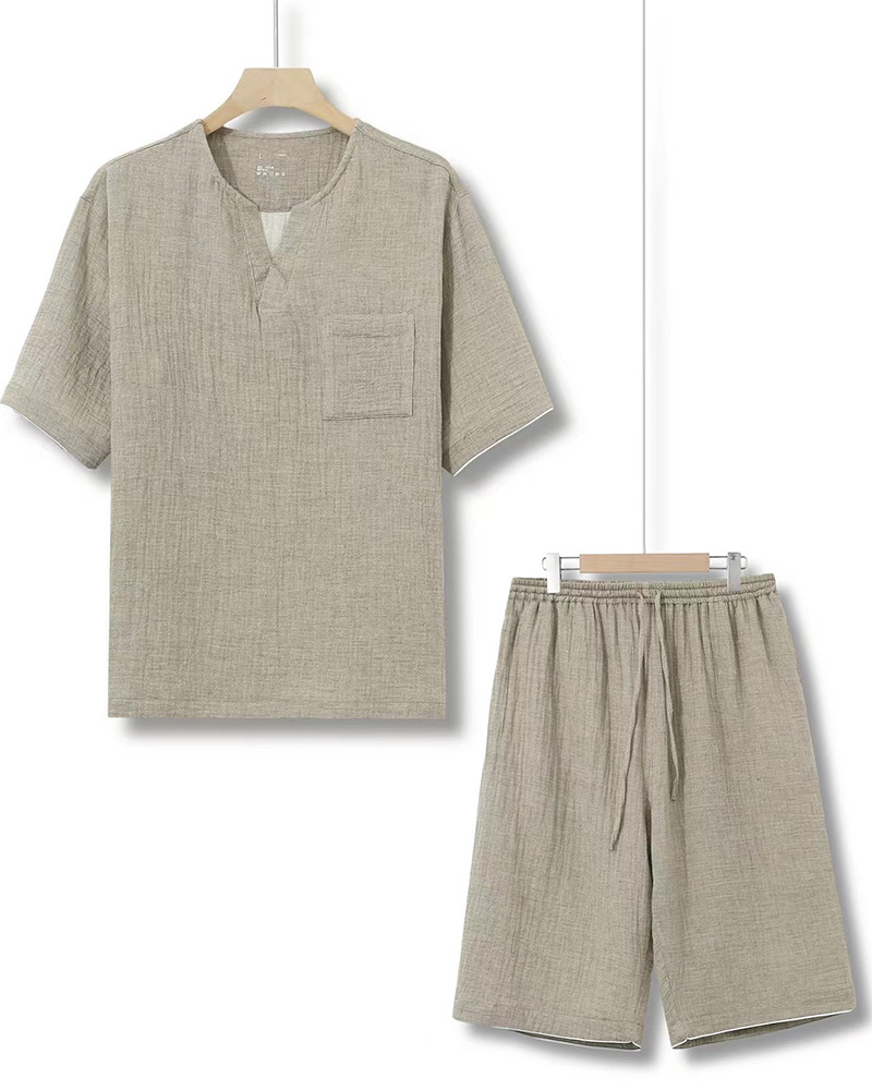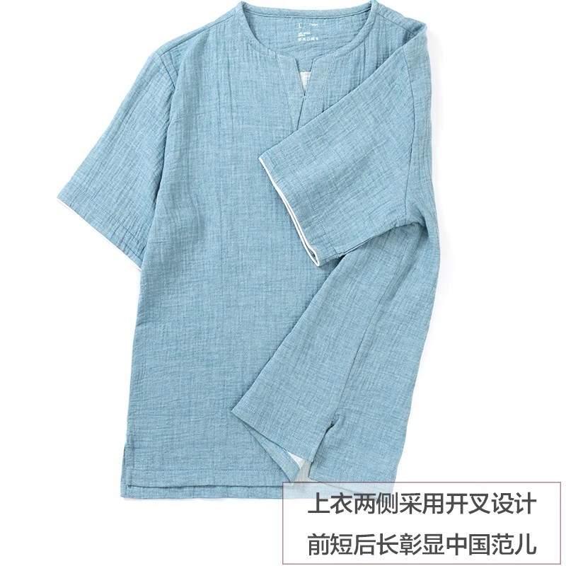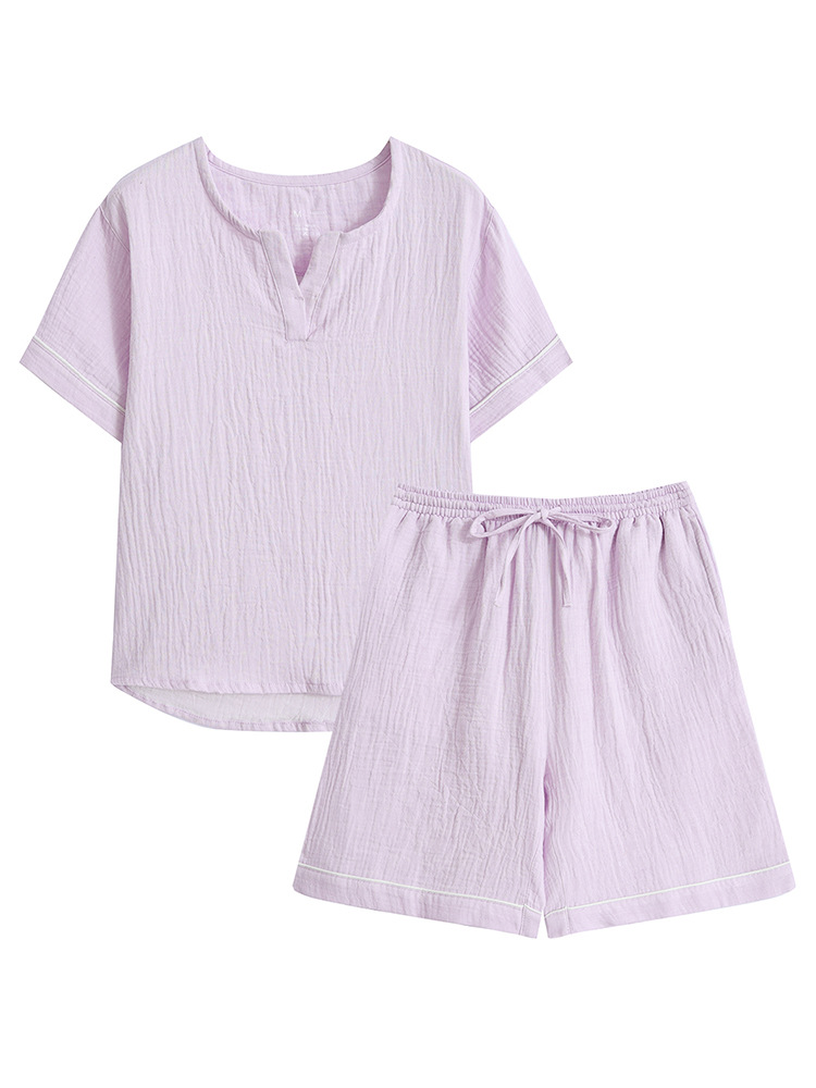 MUJI 일본식 Nightwear 남성용 All Cotton Crepe 반팔 반바지 면 더블 레이어 원사 마모