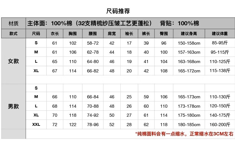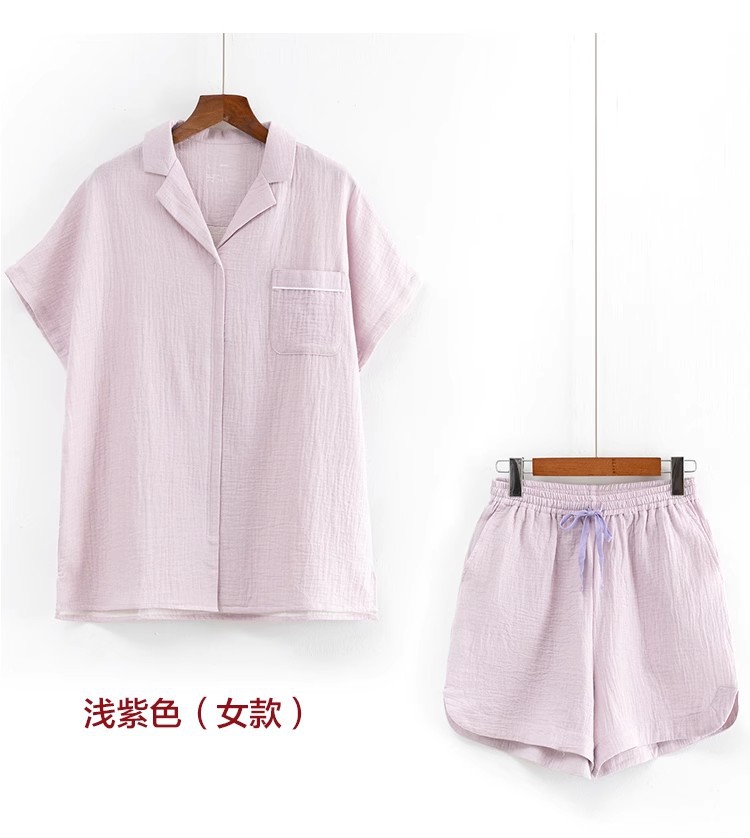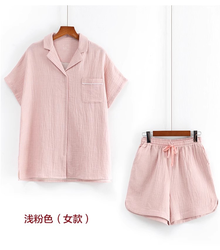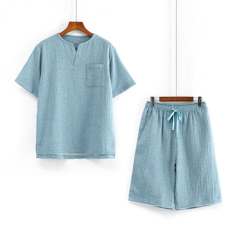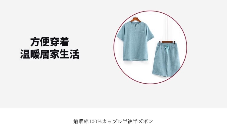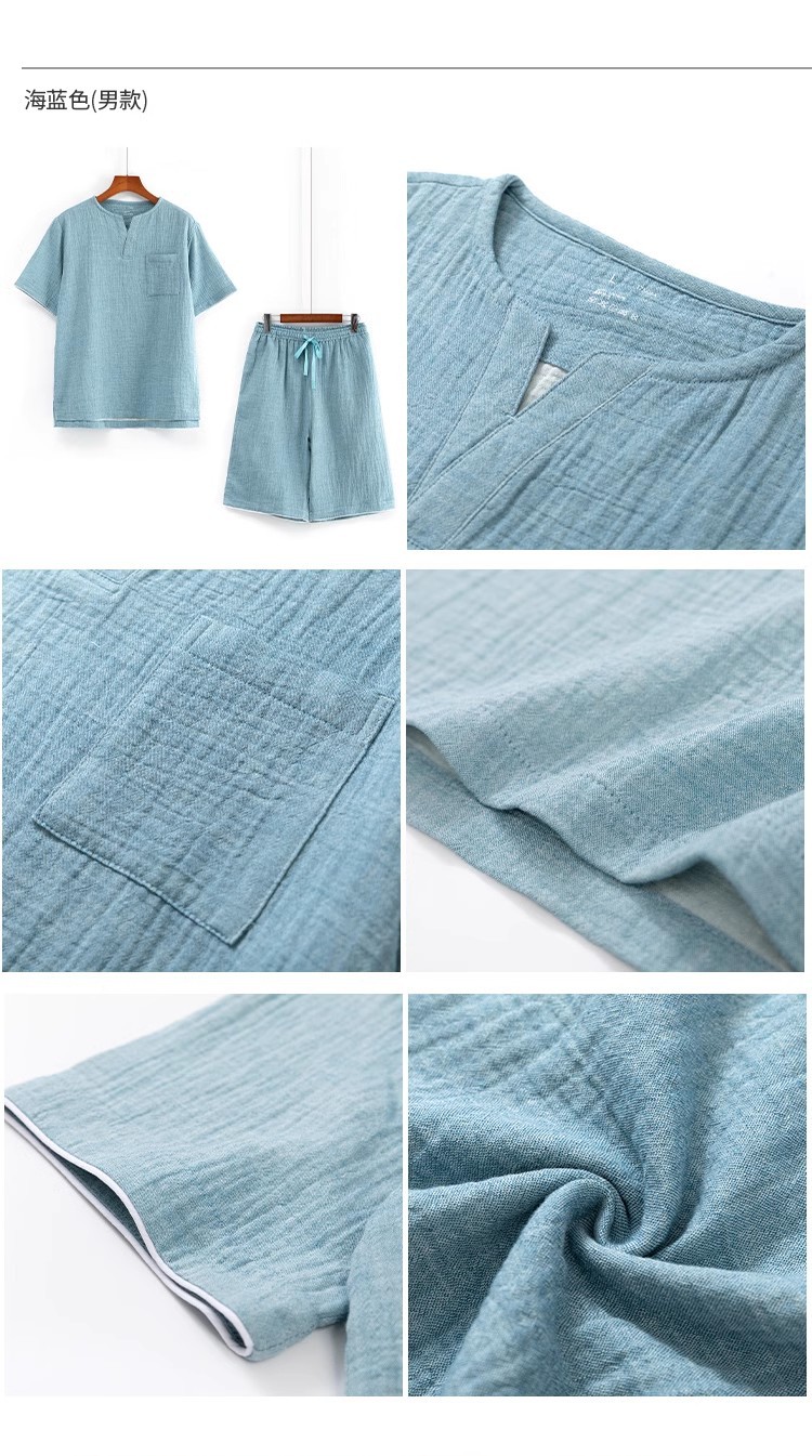 MUJI 일본식 Nightwear 남성용 All Cotton Crepe 반팔 반바지 면 더블 레이어 원사 마모스토어 가기