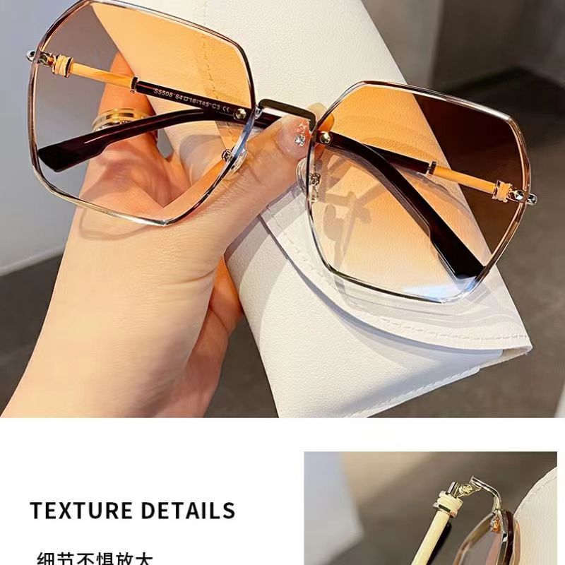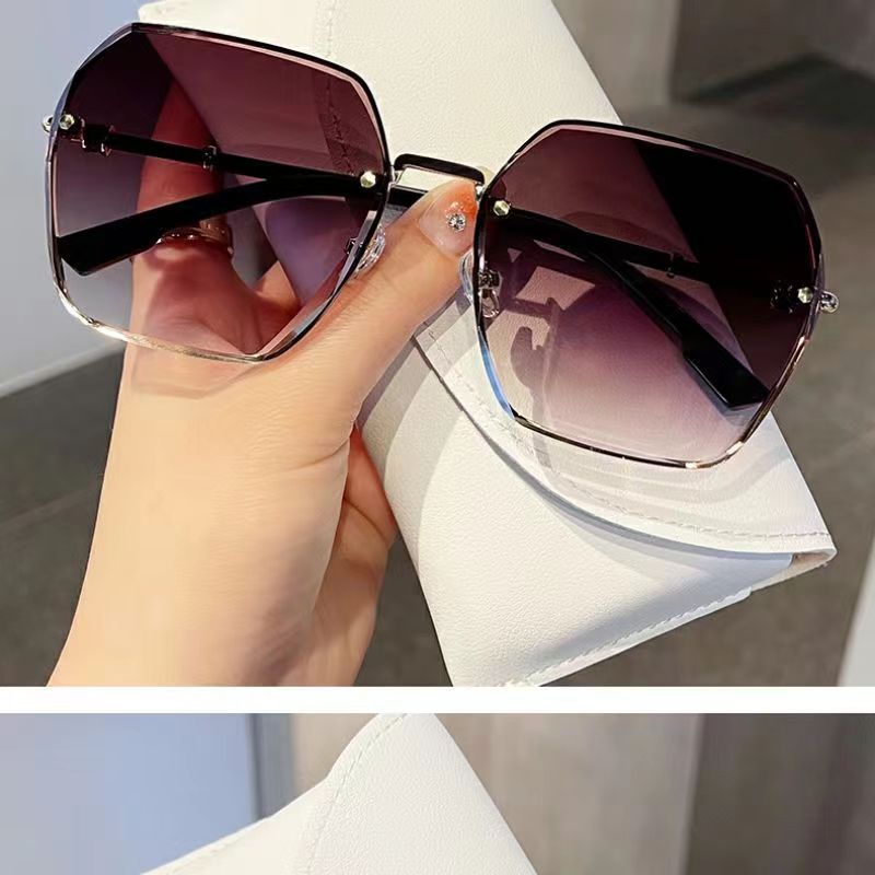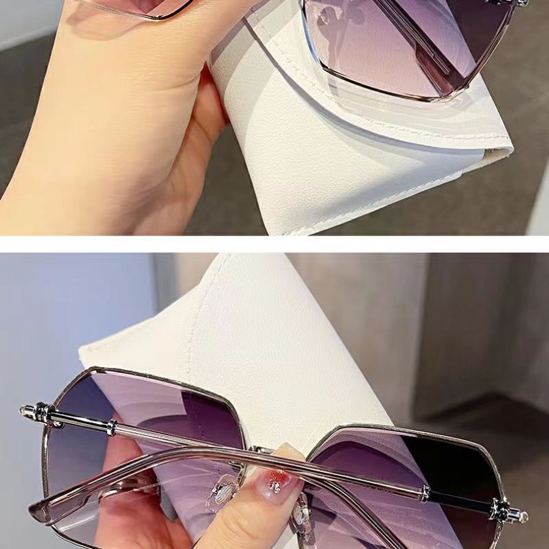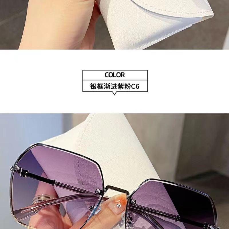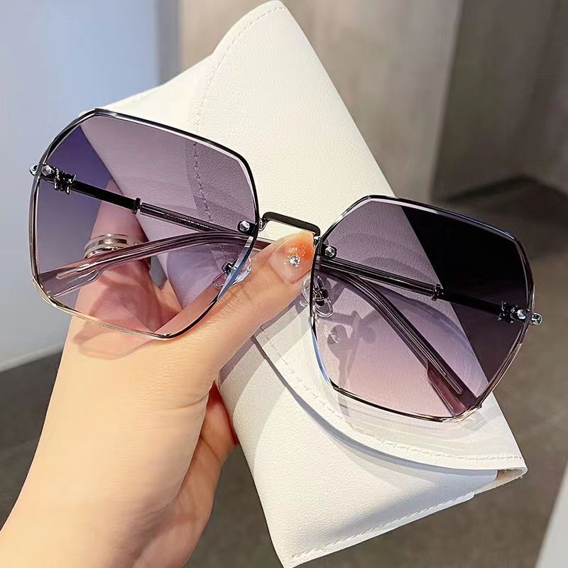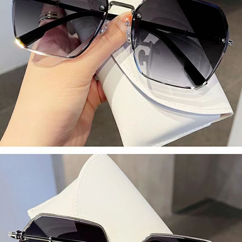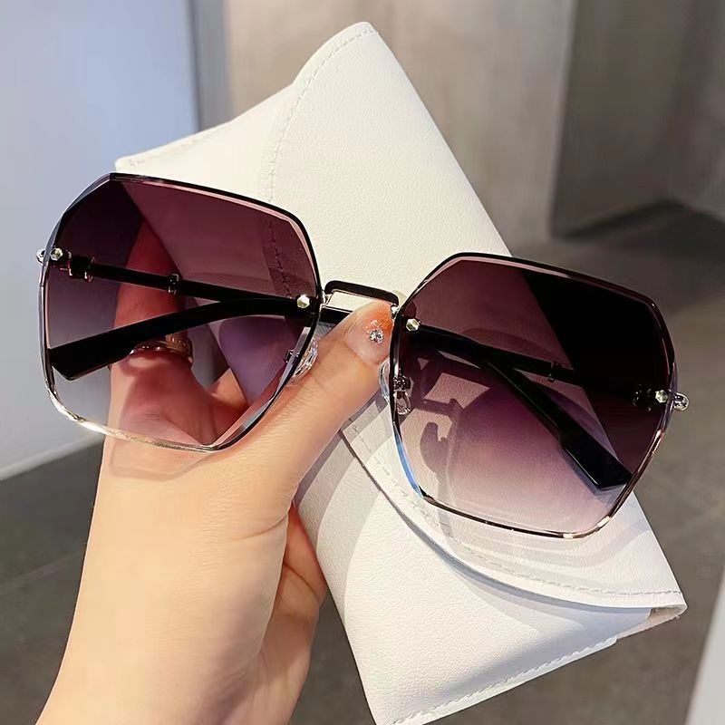 새로운 도착 프레임리스 선글라스 여성용 고급 빅 페이스 안티-UV 라운드 페이스 여름 태양 보호 선글라스 2024