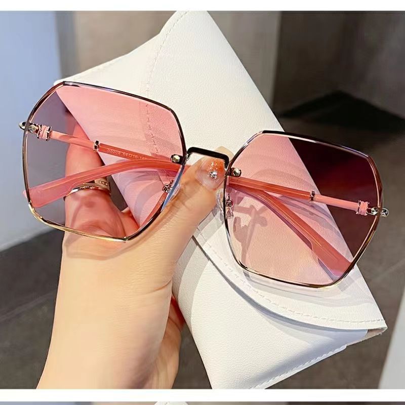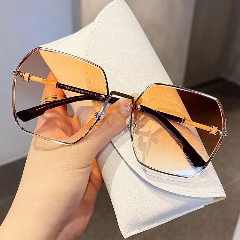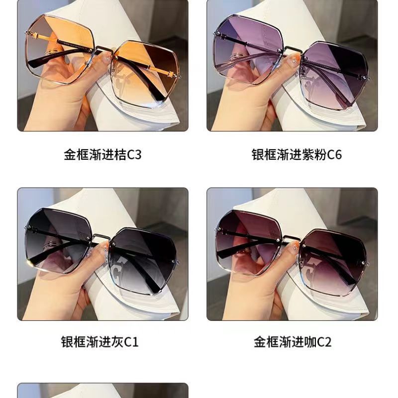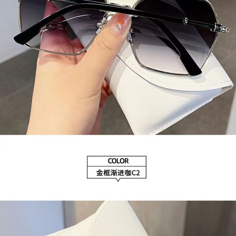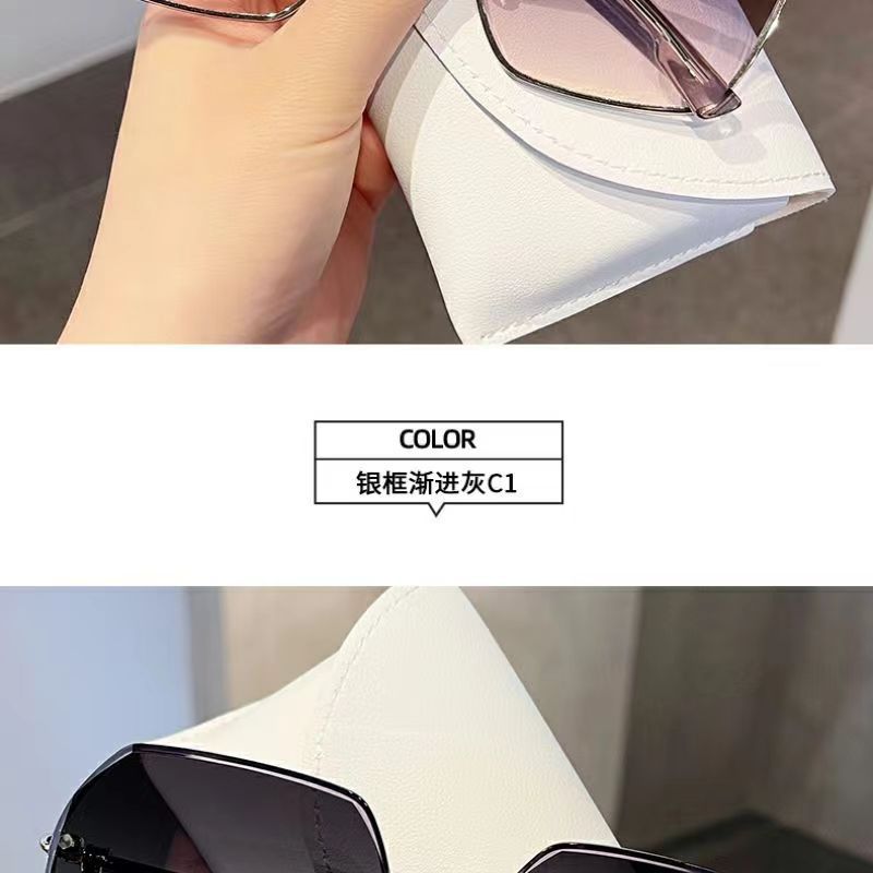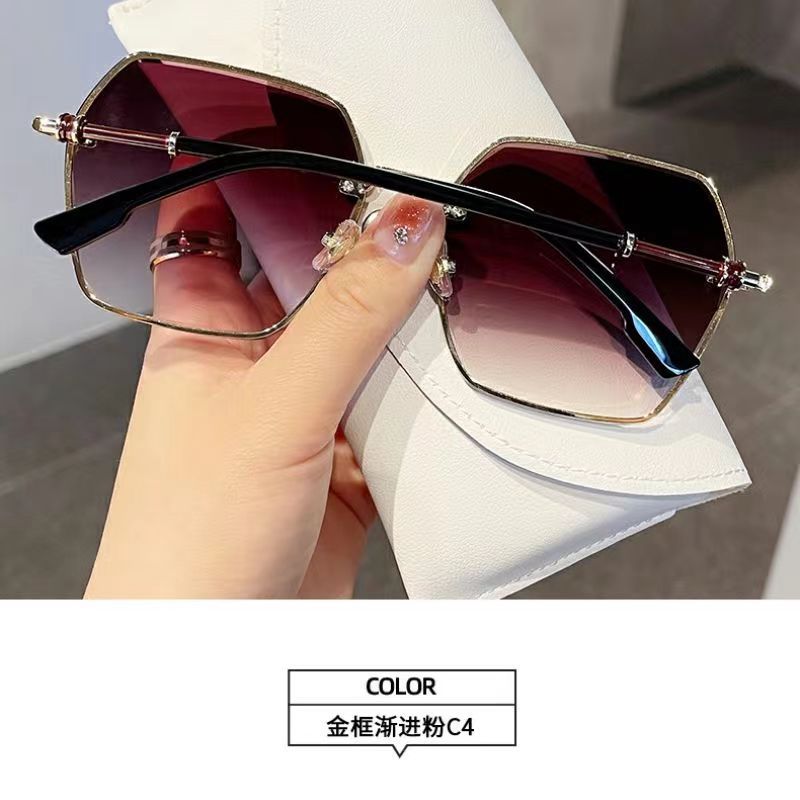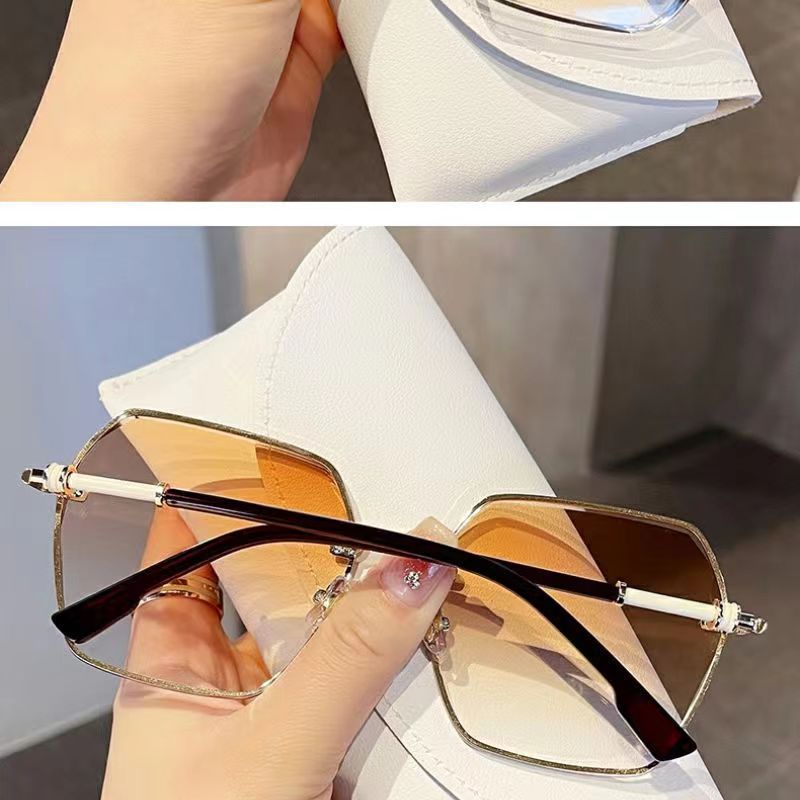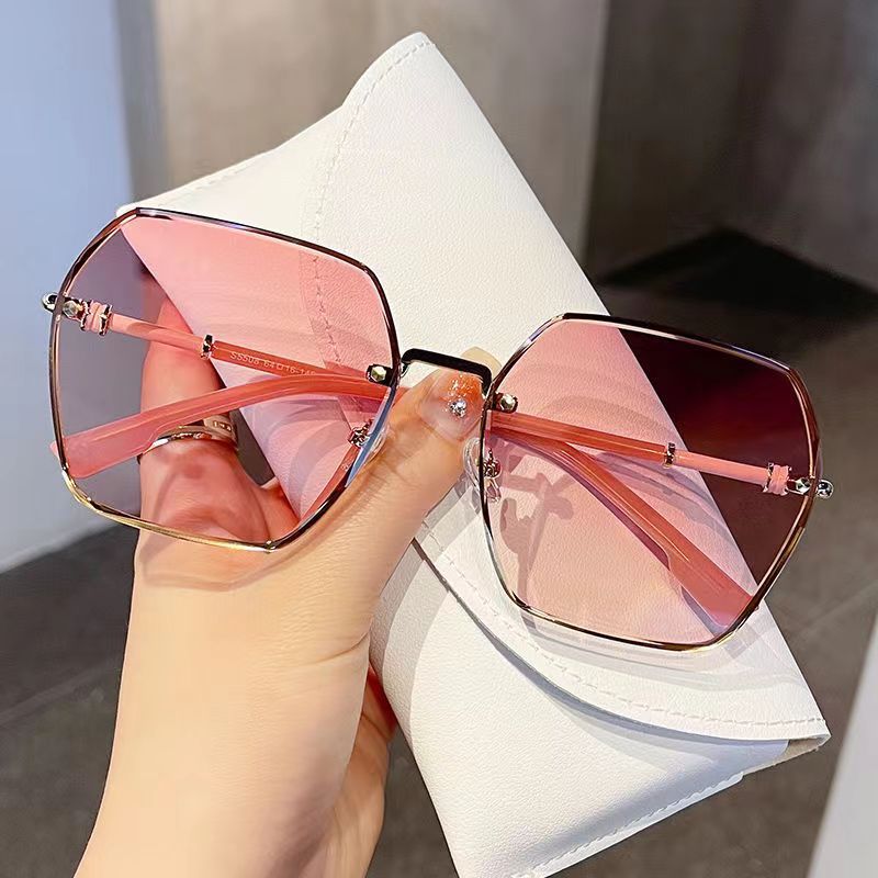 새로운 도착 프레임리스 선글라스 여성용 고급 빅 페이스 안티-UV 라운드 페이스 여름 태양 보호 선글라스 2024