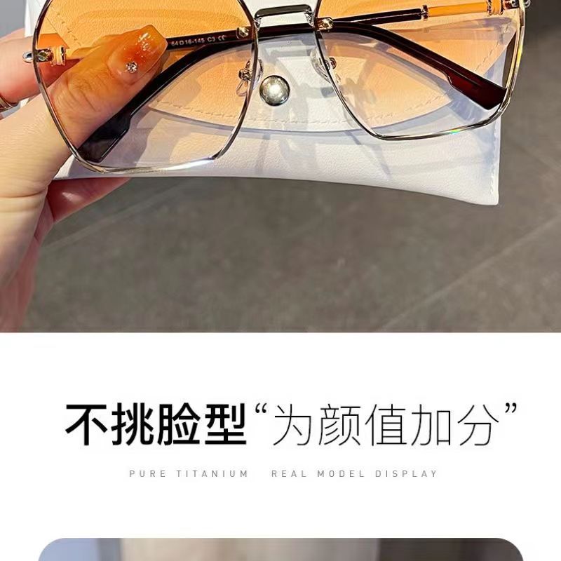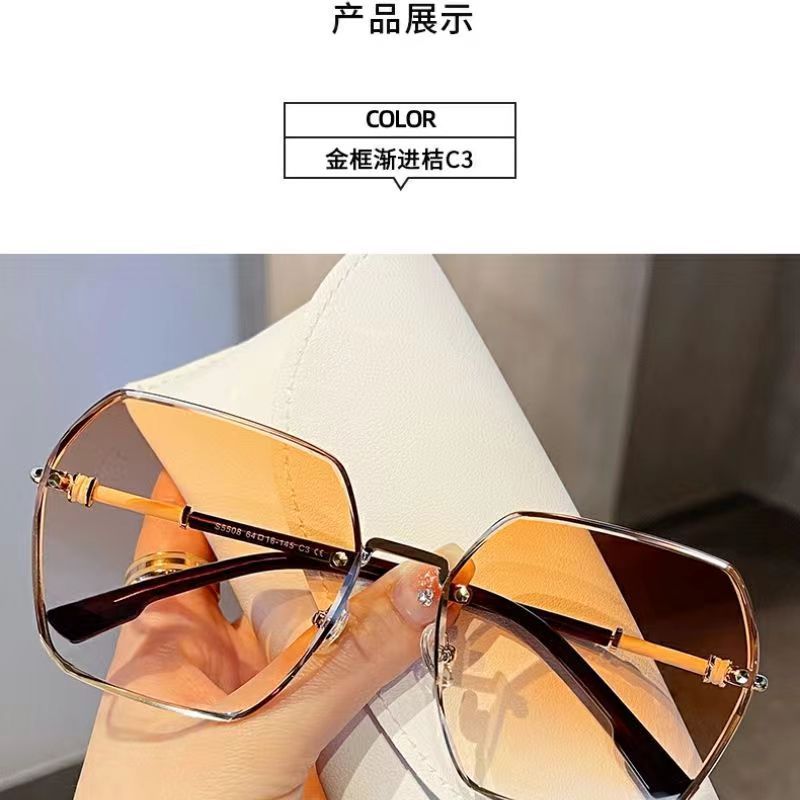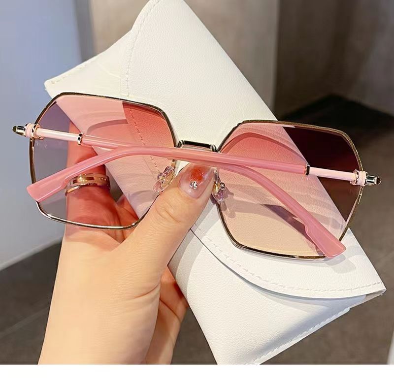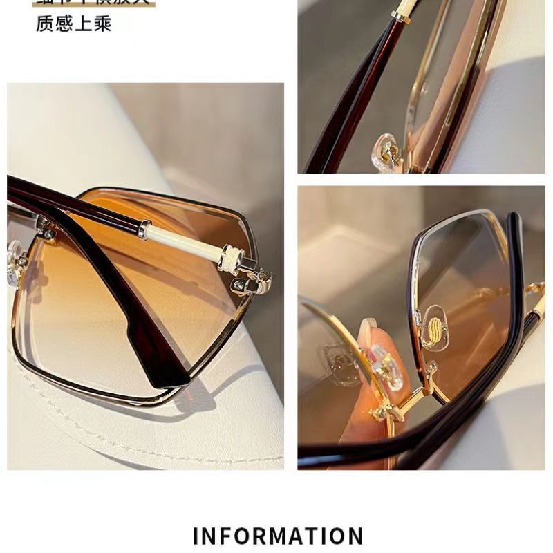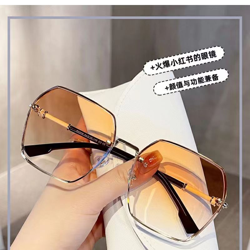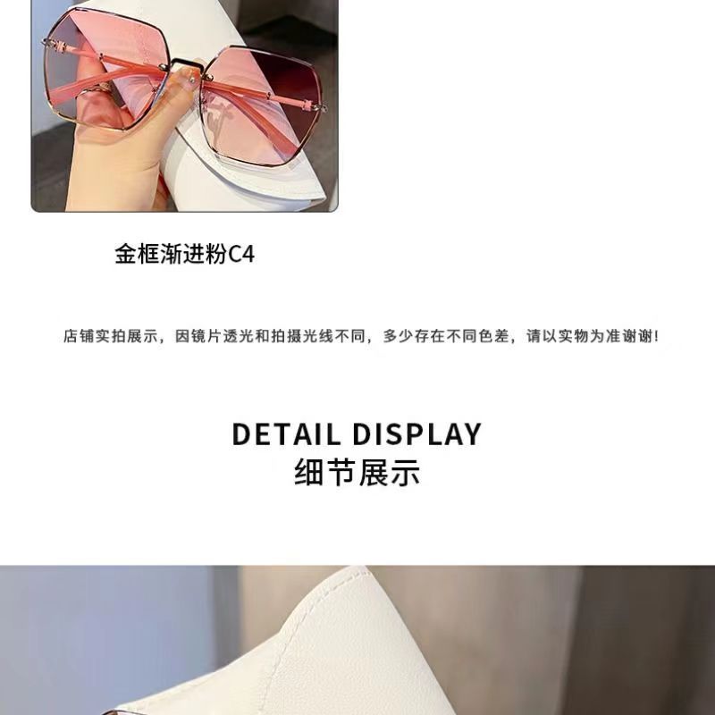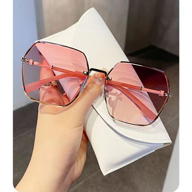새로운 도착 프레임리스 선글라스 여성용 고급 빅 페이스 안티-UV 라운드 페이스 여름 태양 보호 선글라스 2024