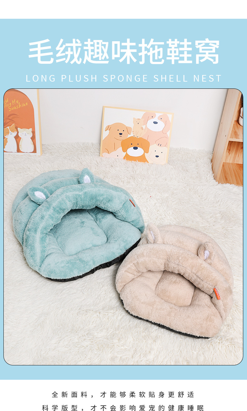고양이집, 애완동물집, 강아지집, 새로운 스타일의 귀여운 귀 달린 슬리퍼, 따뜻한 털이 있는 애완용품 도매, 따뜻한 고양이 용품스토어 가기