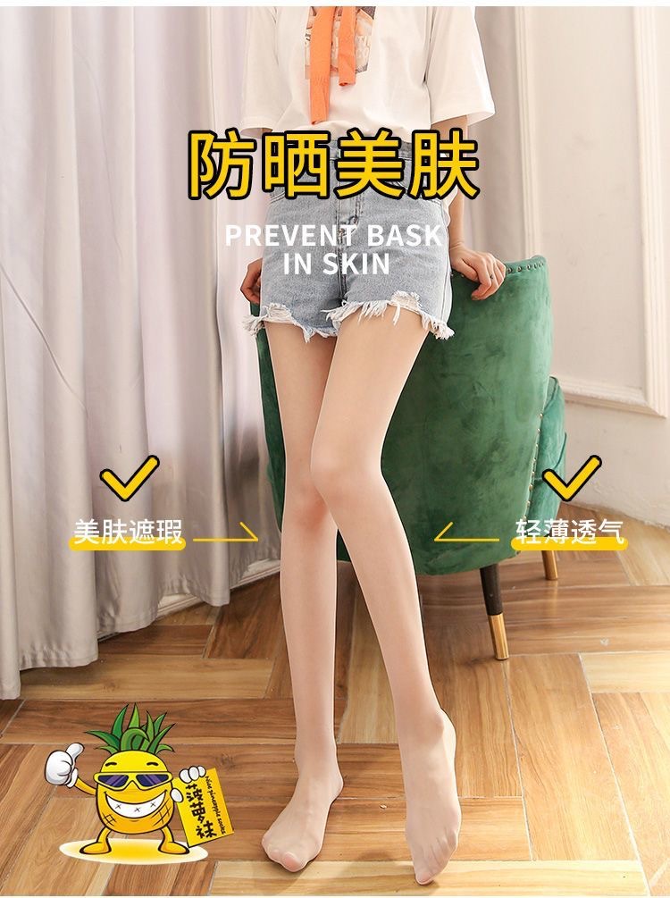 여성 여름 초박형 안티 후크 머서라이즈 레그 아티팩트 컬러 태양 보호 파인애플 양말 섹시한 미끄럼 팬티 스타킹