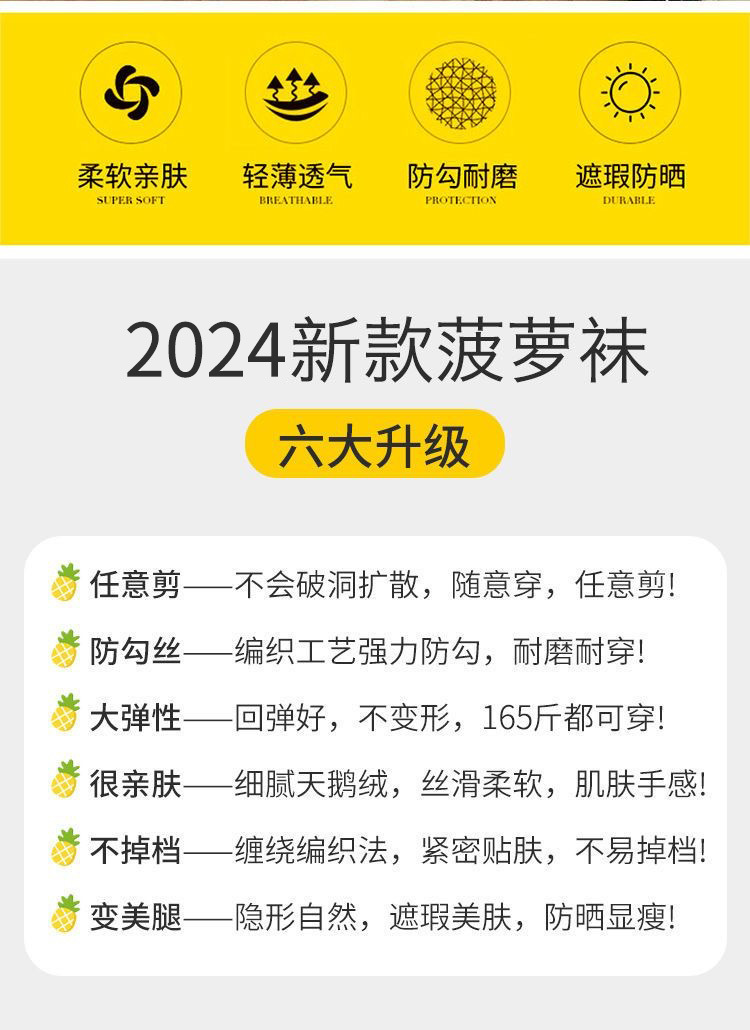 여성 여름 초박형 안티 후크 머서라이즈 레그 아티팩트 컬러 태양 보호 파인애플 양말 섹시한 미끄럼 팬티 스타킹스토어 가기