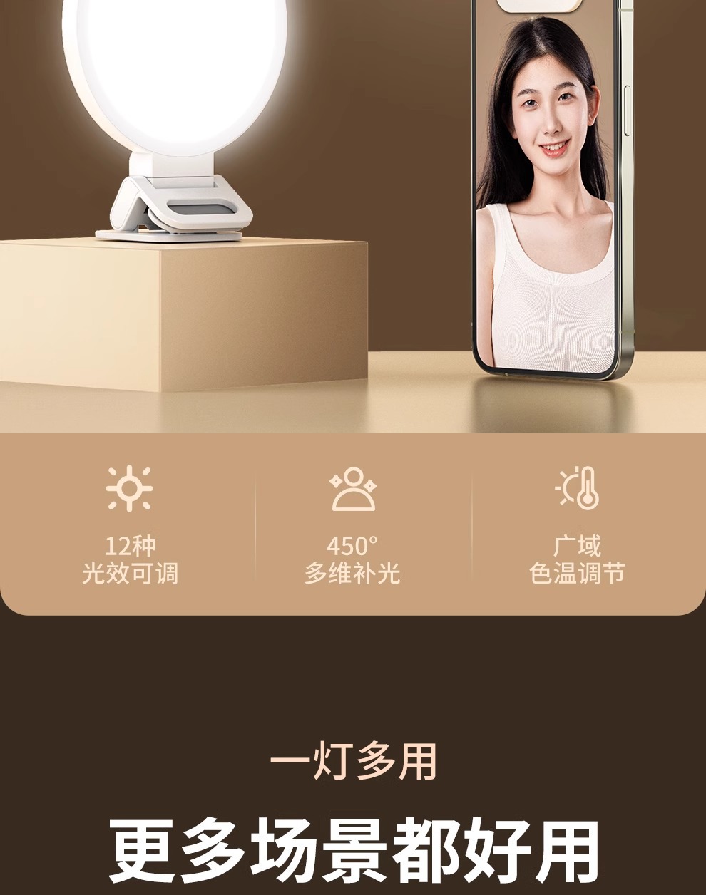 • 전체 화면 빛 [추위와 따뜻한 흰색 채우기 빛] 데스크탑 휴대 전화 브래킷 세트