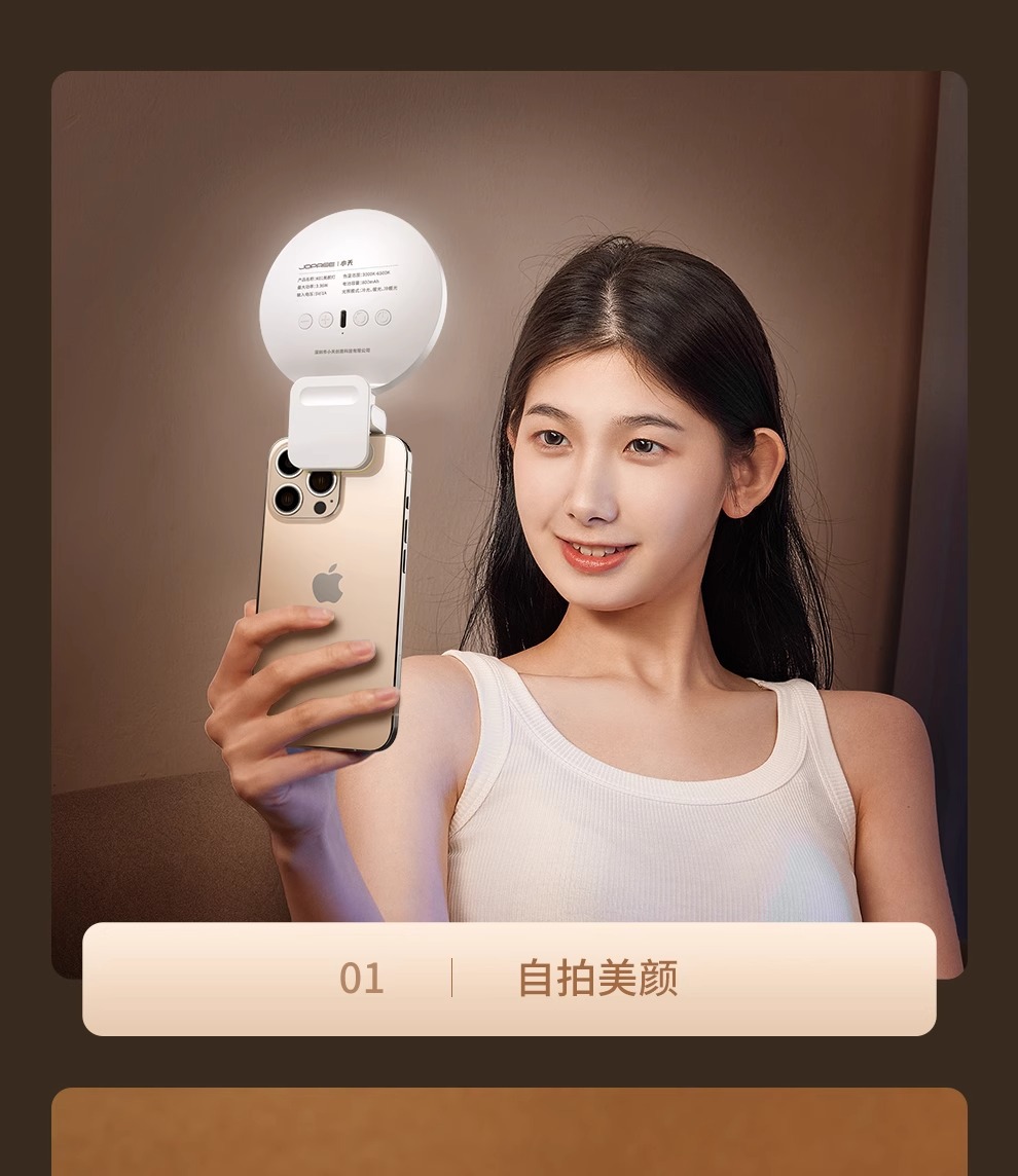 샤오티엔 휴대폰 보조 조명 라이브 방송 셀카용 휴대용 LED 포켓 조명 데스크탑 링 라이트 조광 가능