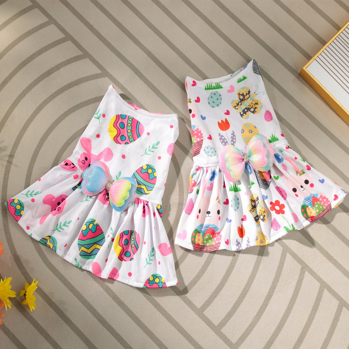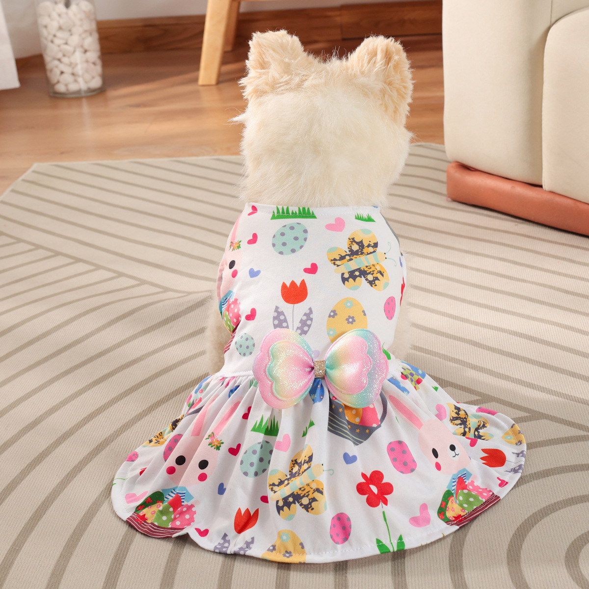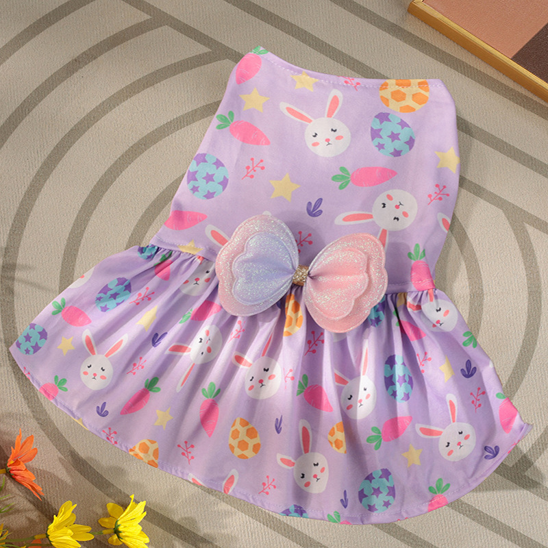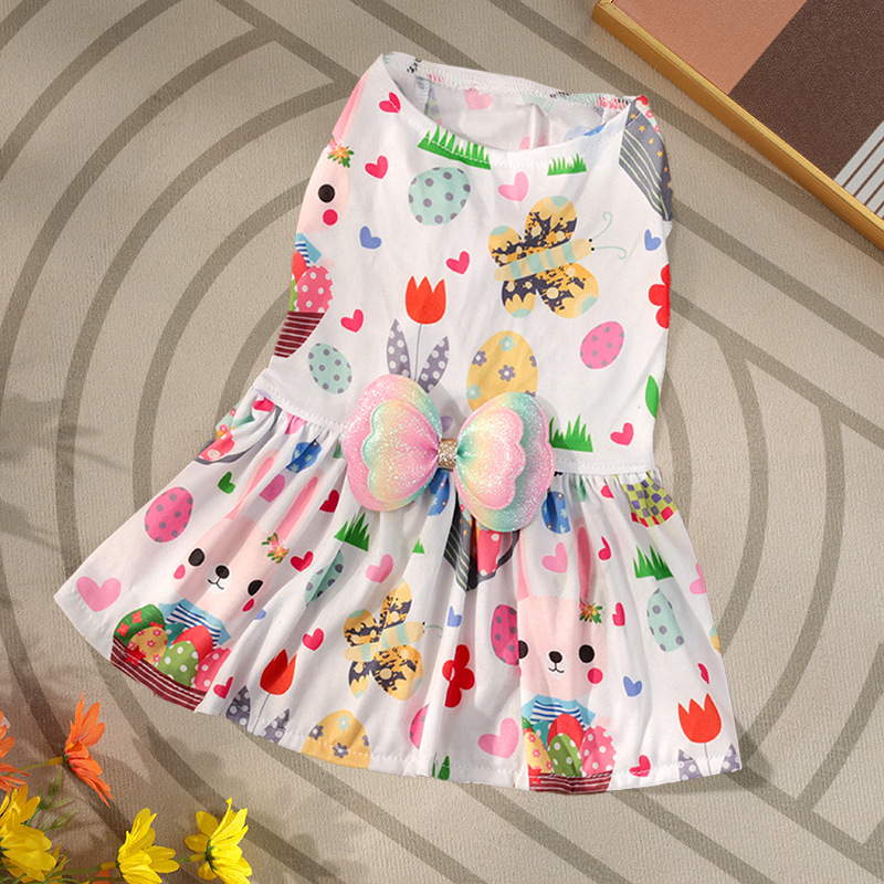 새로운 애완 동물 옷 장식 부활절 달걀 토끼 여름 귀여운 나비 공주 원피스 소스 제조업체 국경