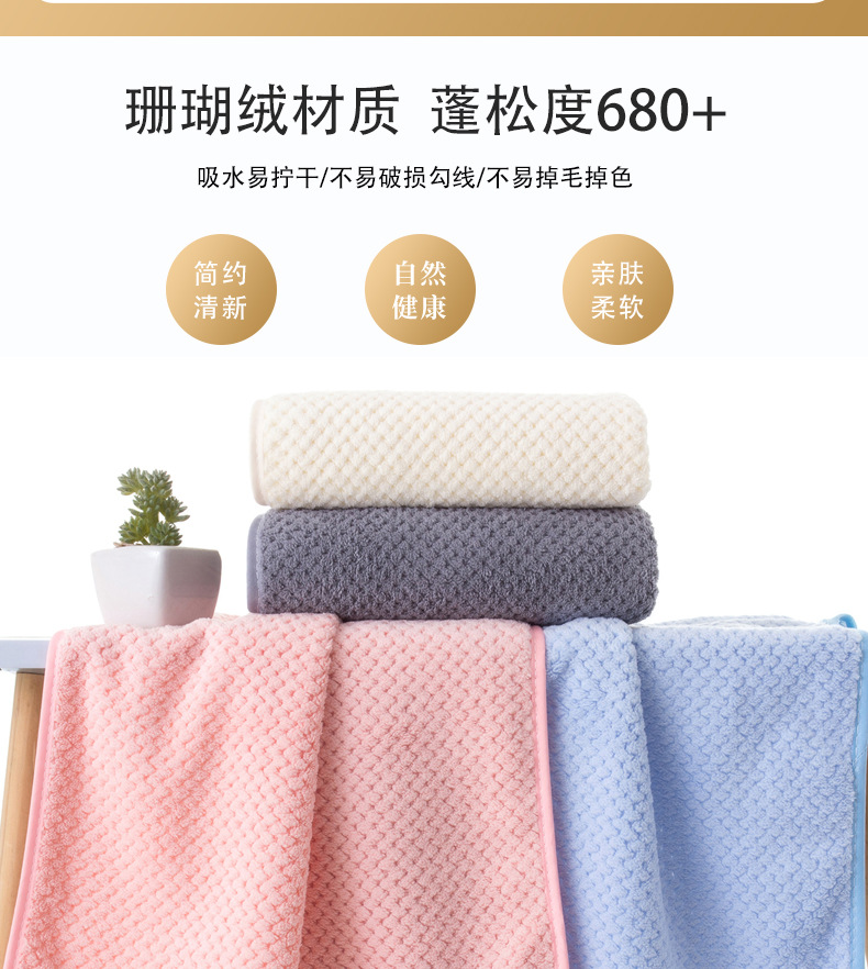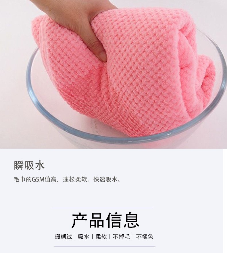 산호 벨벳 파인애플 격자 무늬 수건 수건 흡수성 두꺼운 집 매일 부드러운 수건 린트 수건을 대신 보낼 수 있습니다