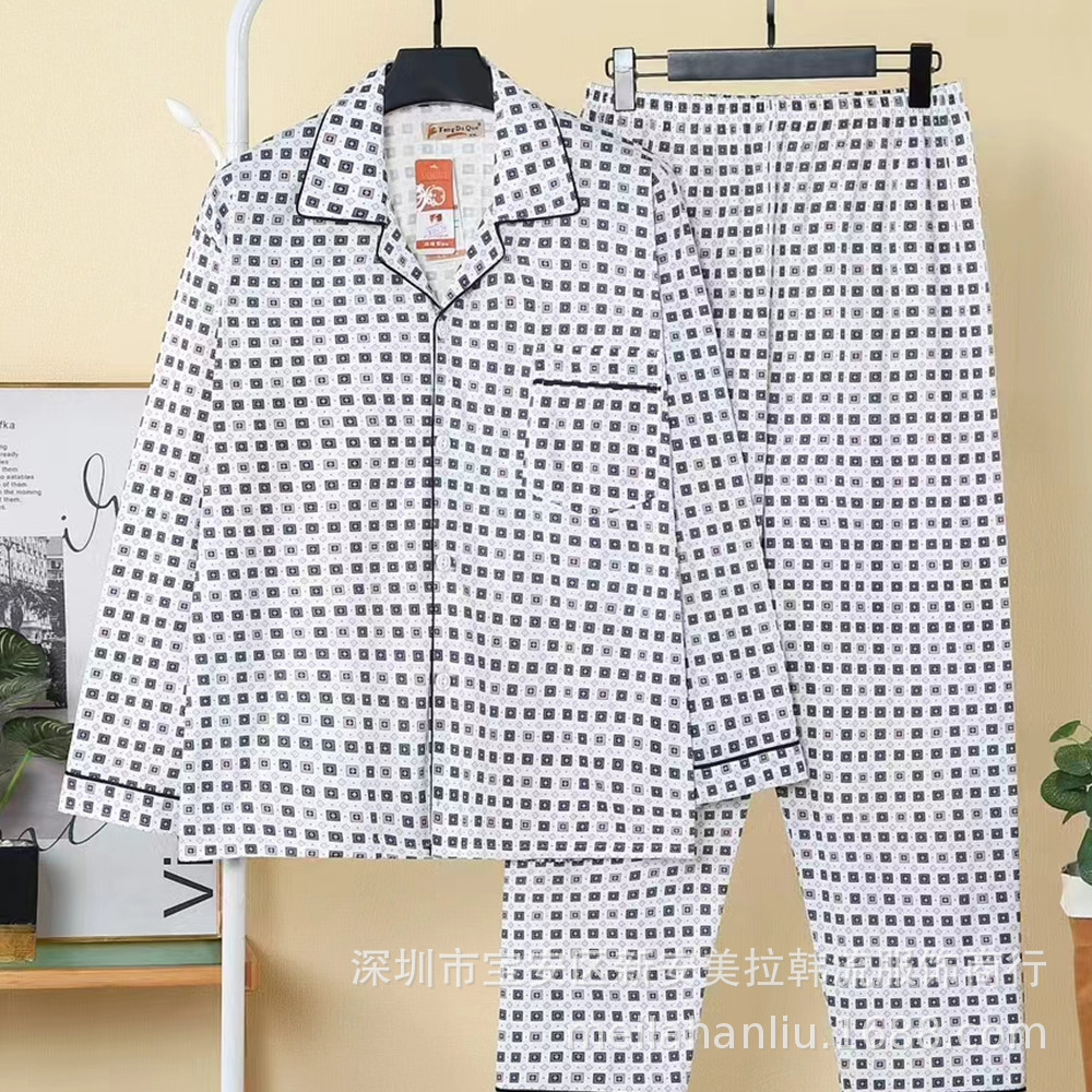 우아한 새 봄과 가을 여름 얇은 남성 긴팔 카디건 옷깃 니트 코튼 파자마 플러스 사이즈 남성 캐주얼 홈웨어 5XL스토어 가기