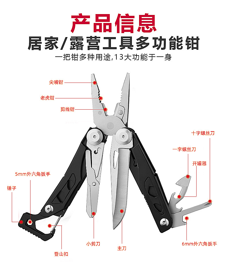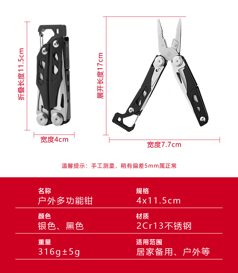 국경을 넘는 다기능 야외용 칼과 플라이어, 다기능 접이식 칼과 플라이어, 캠핑용 다기능 도구, 카라비너 포함 휴대용 플라이어