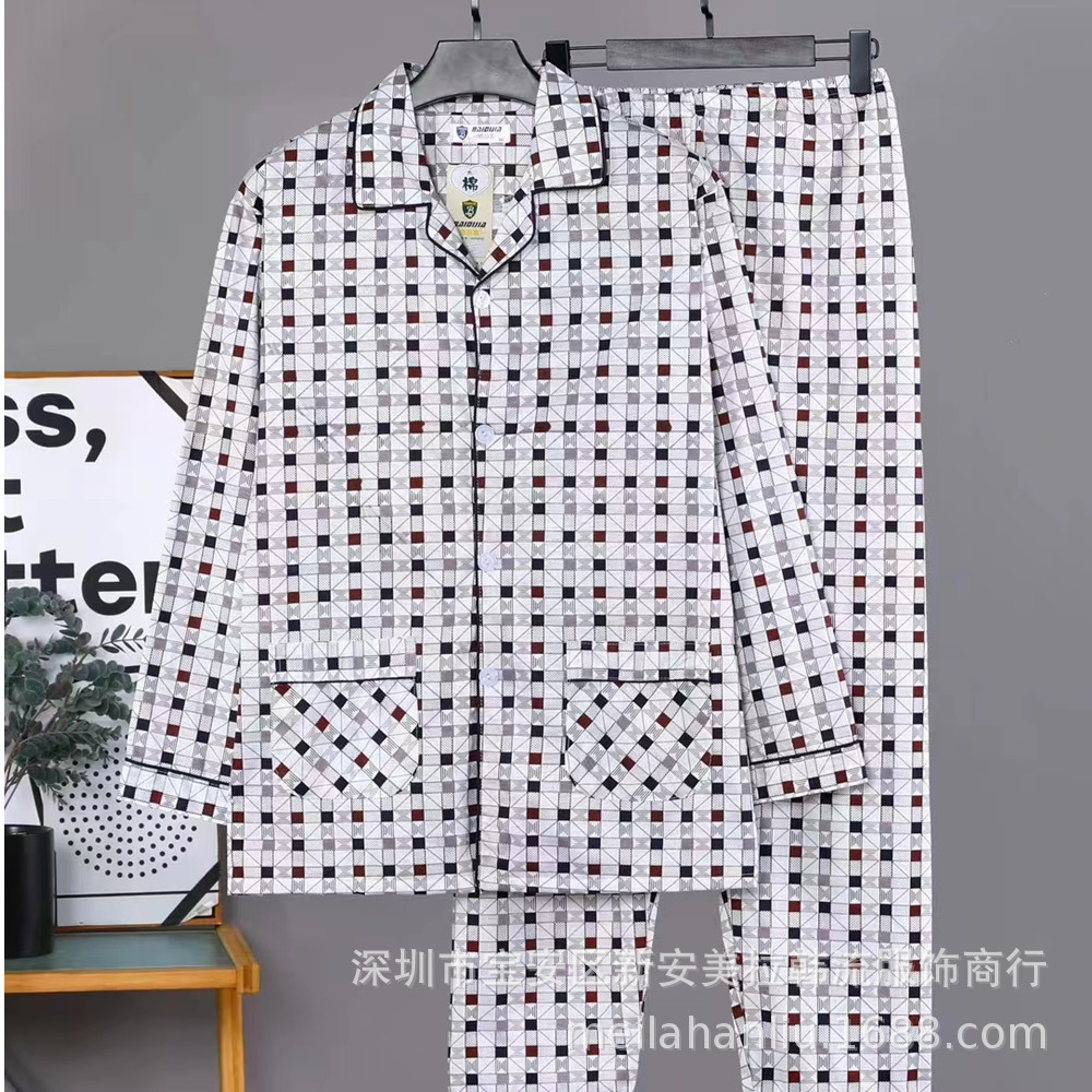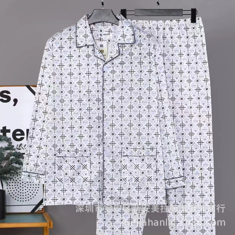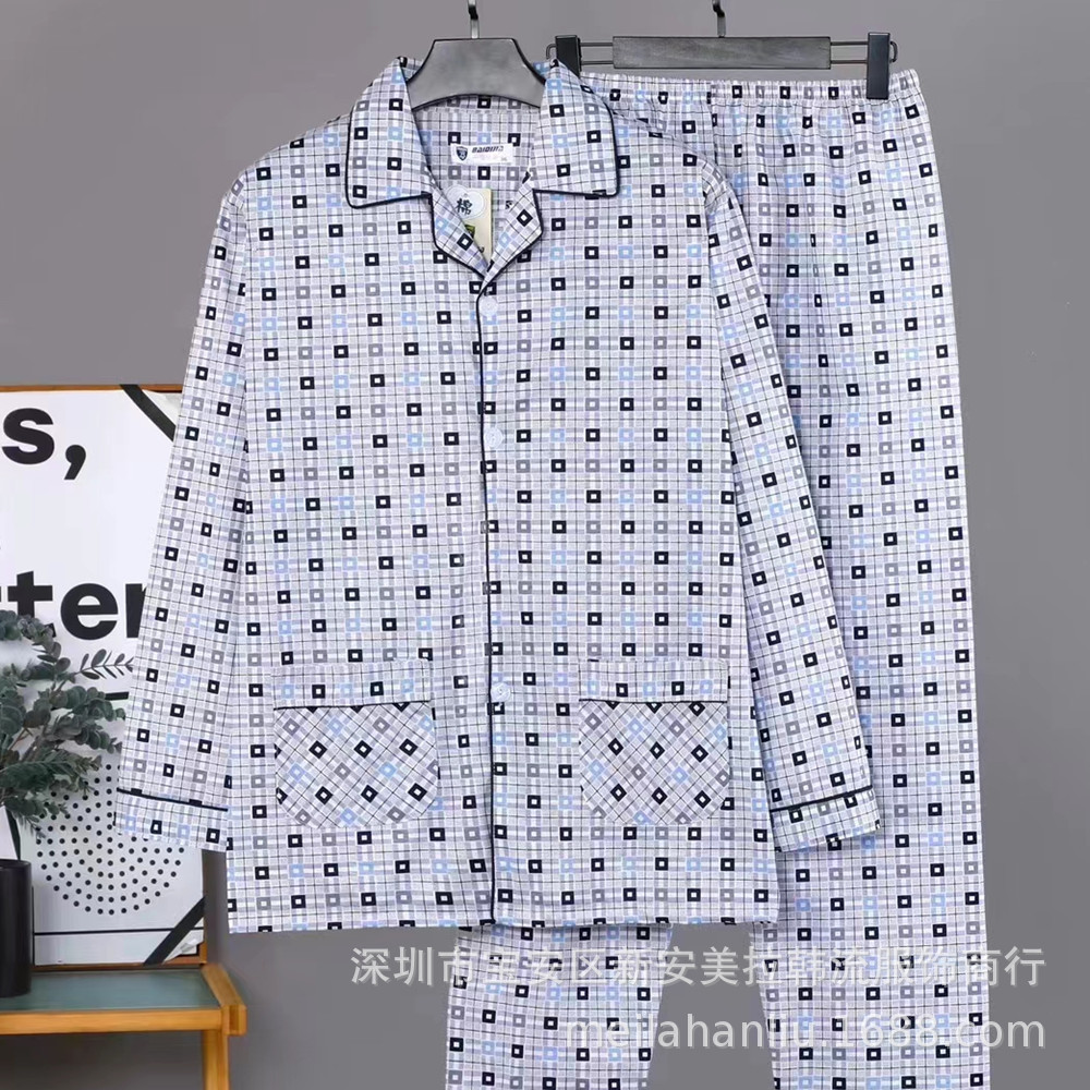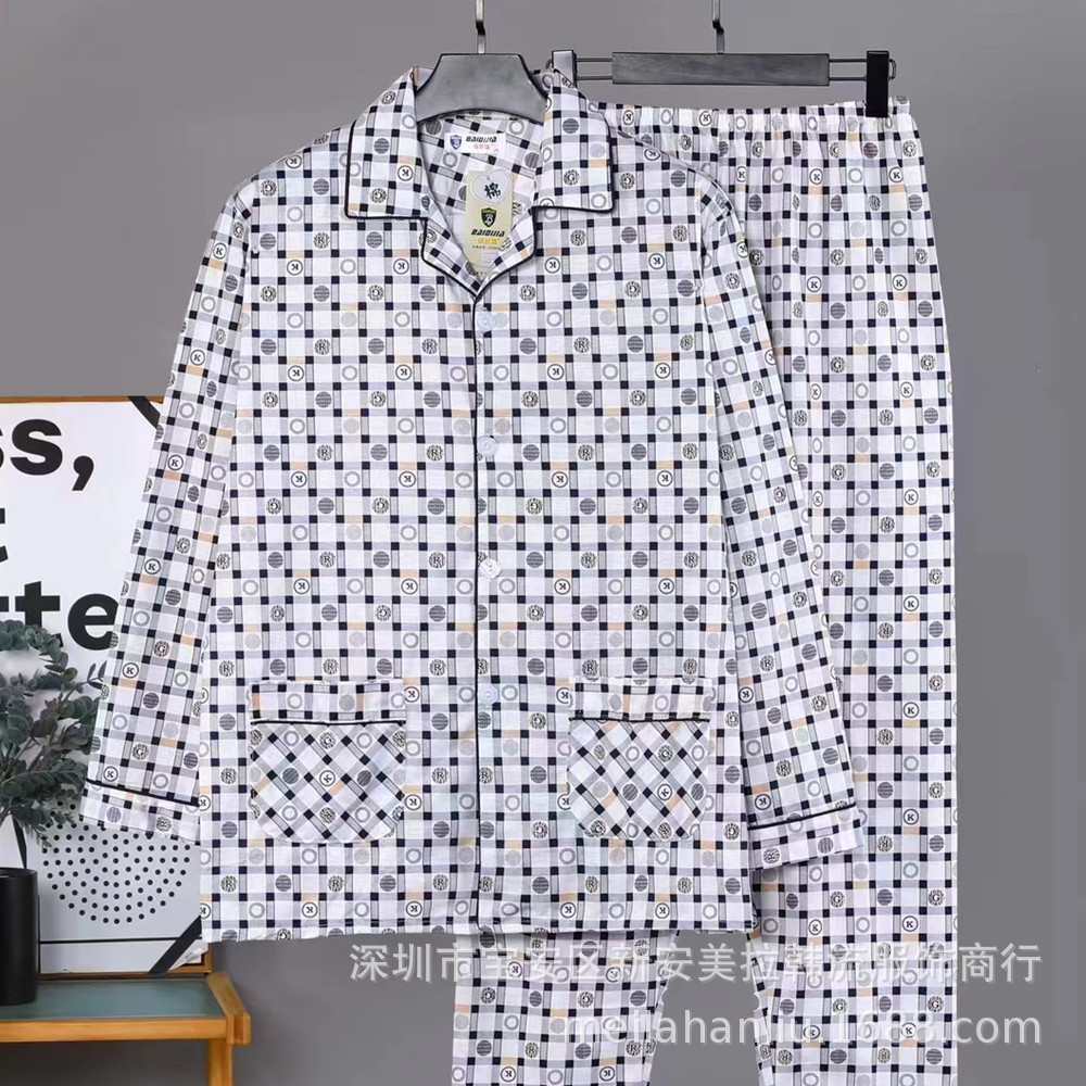 Baidijia 봄과 가을 남성 긴팔 바지 니트 코튼 파자마 카디건 옷깃 여름 남성 플러스 사이즈 캐주얼 홈 5X
