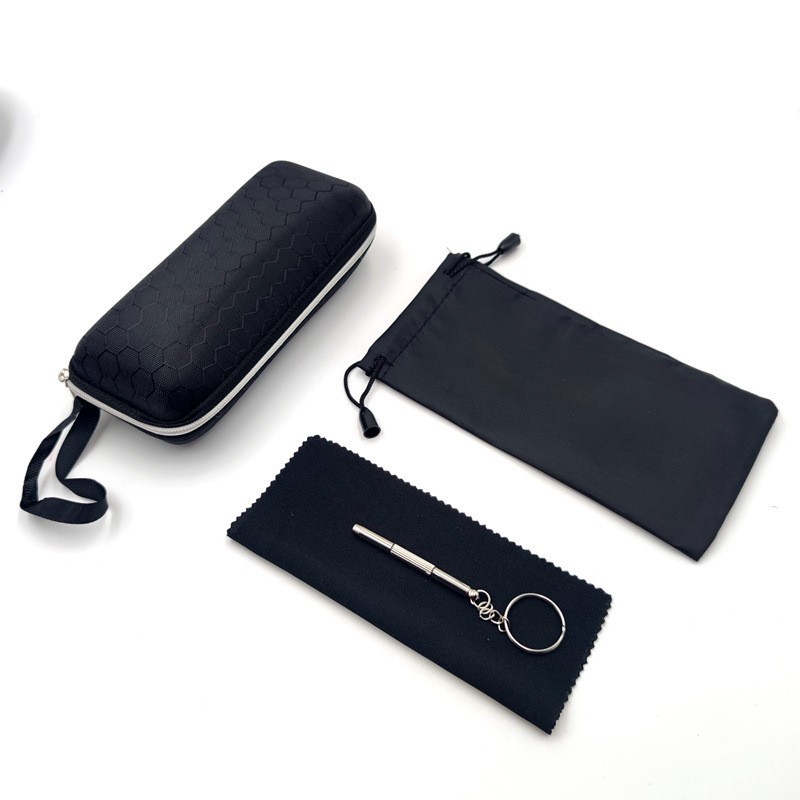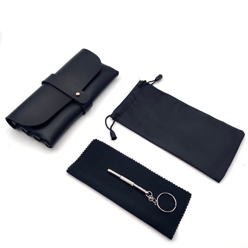 새로운 안경 케이스 전체 세트 하늘과 흙 커버 가죽 손으로 만든 안티 압력 유니버설 안경 천 스크루 드라이버 편광 테스트 카드