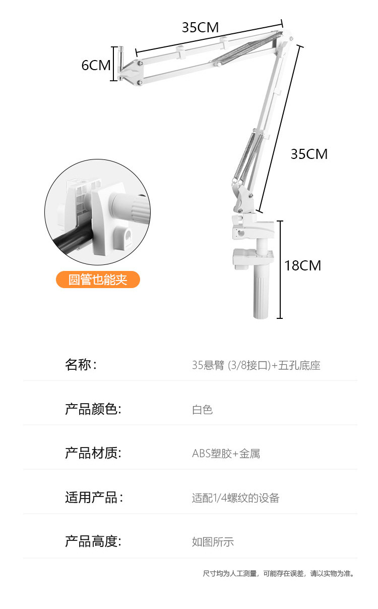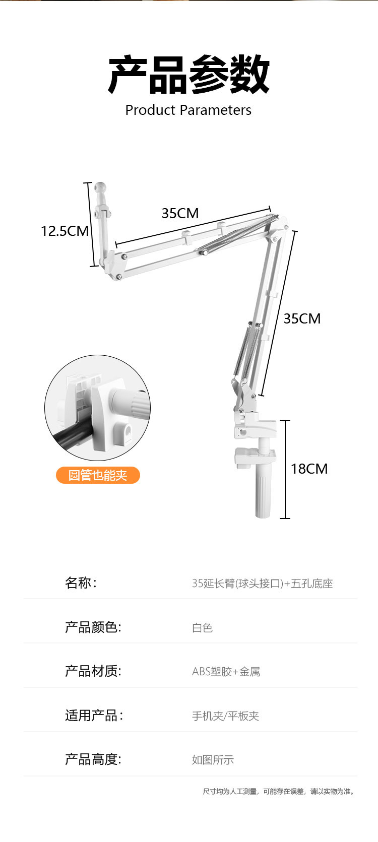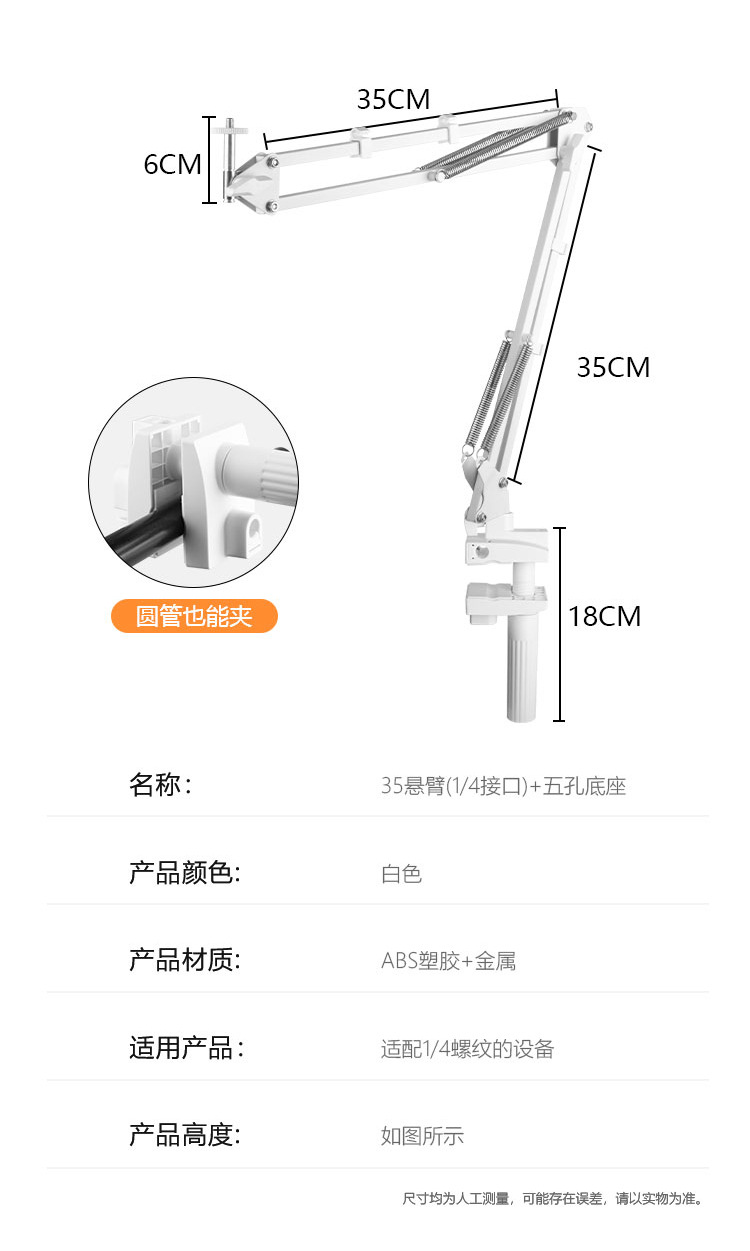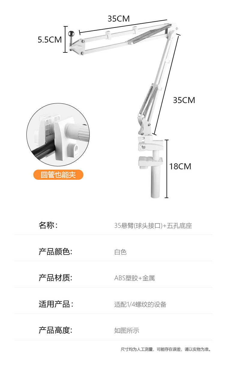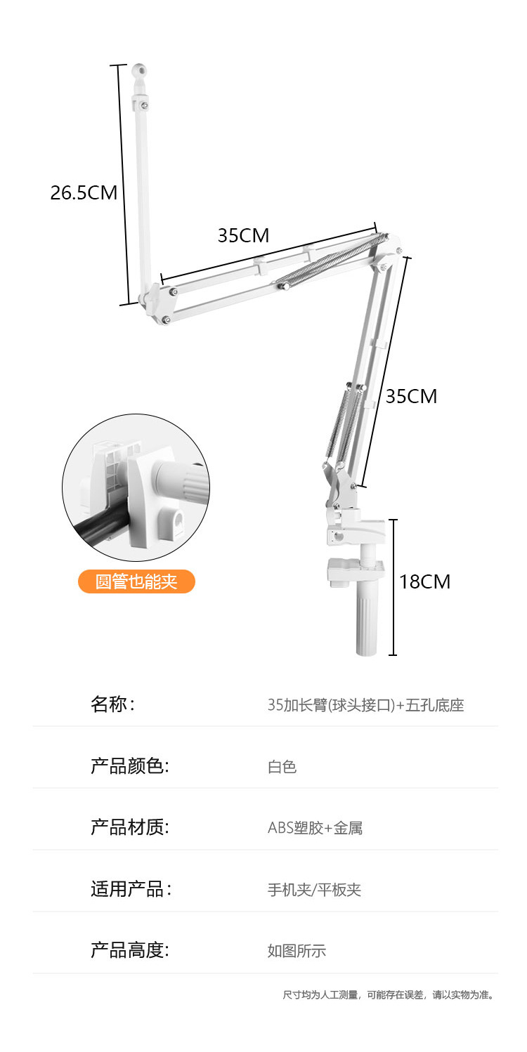 • 35 확장 팔 + 휴대 전화 클립 + 5 홀베이스