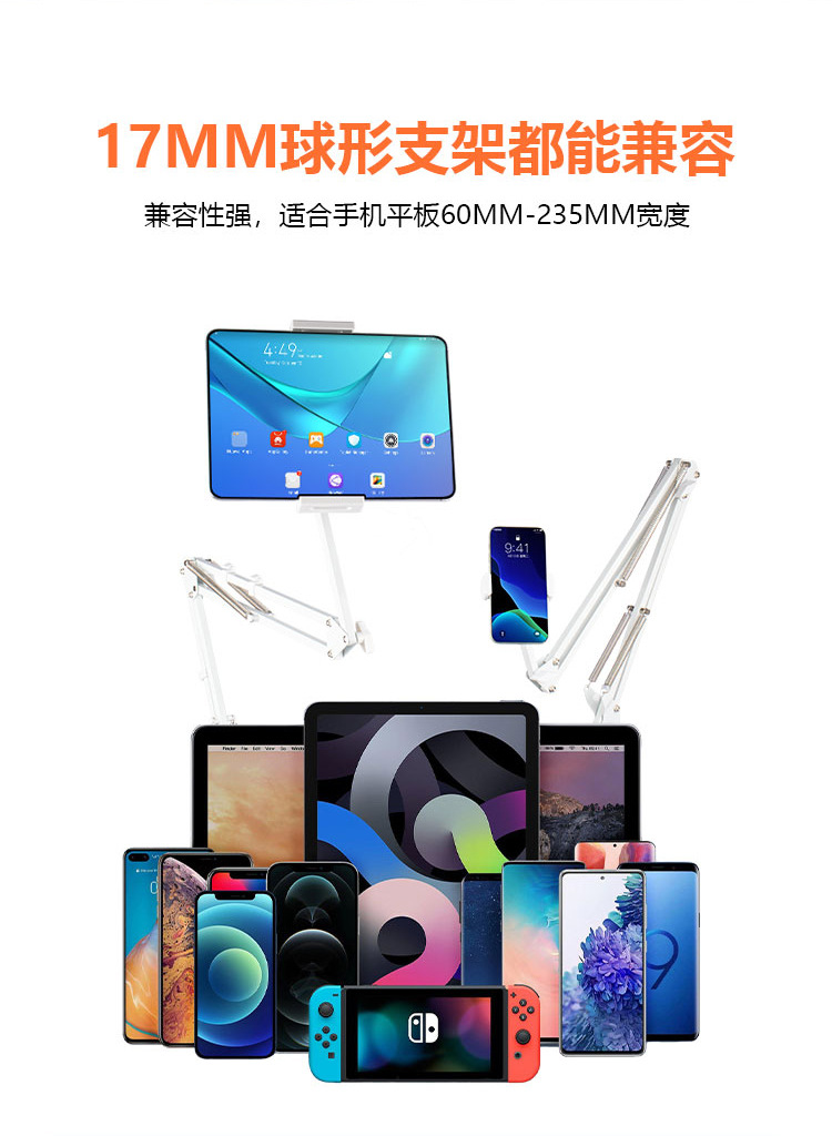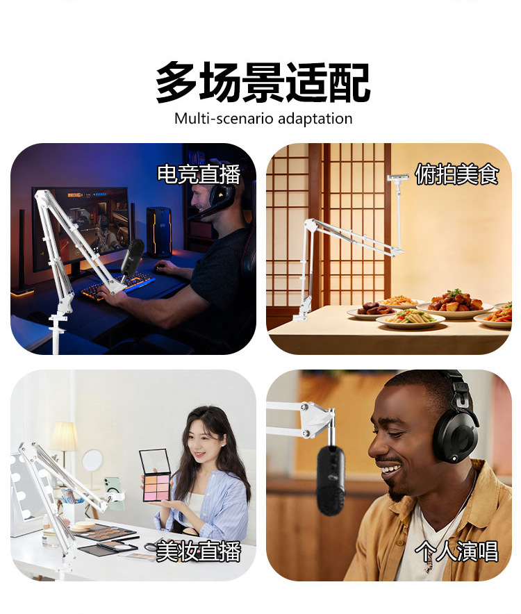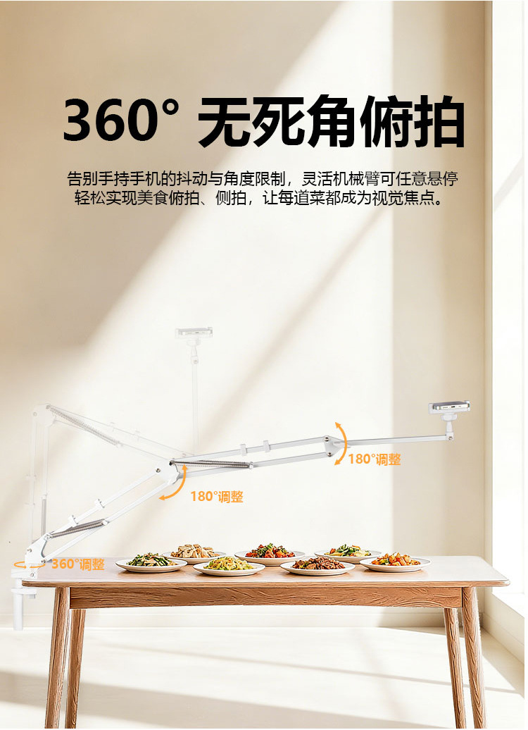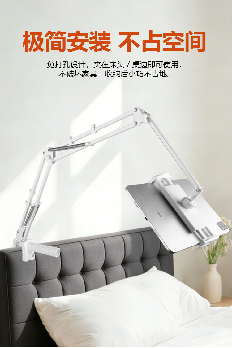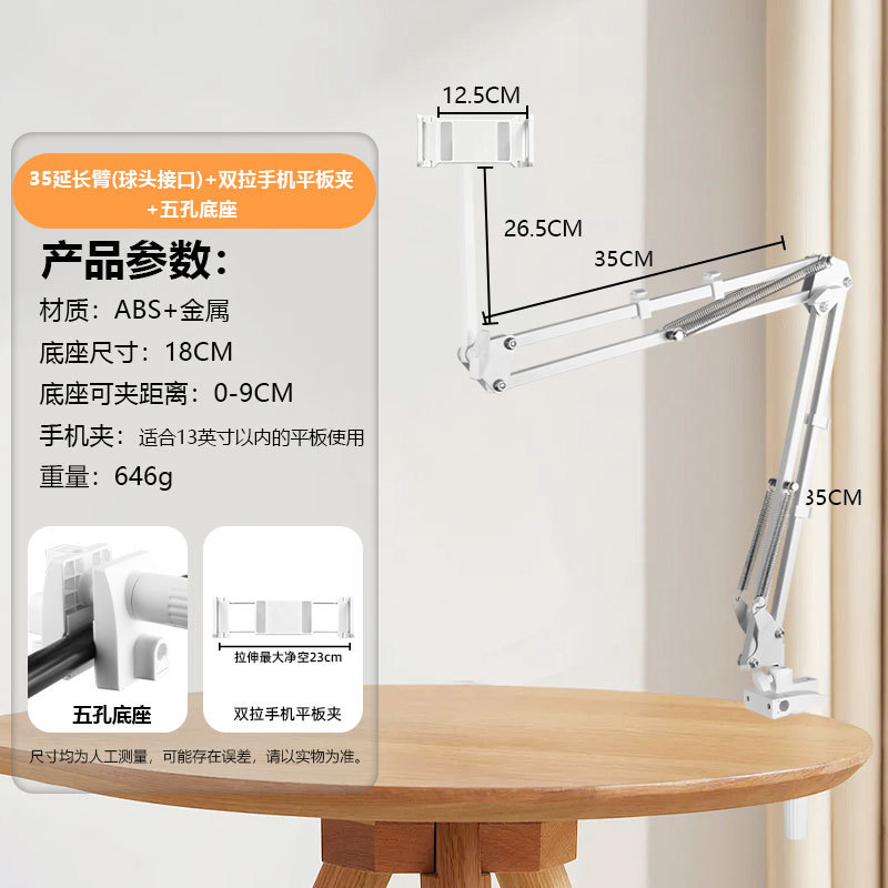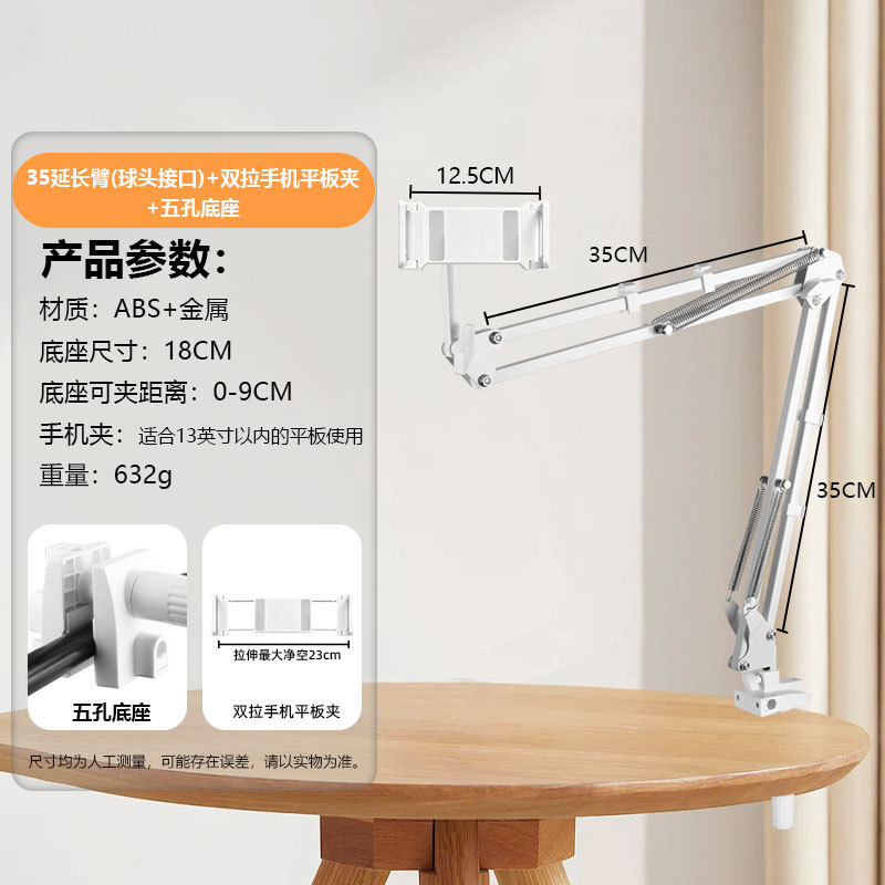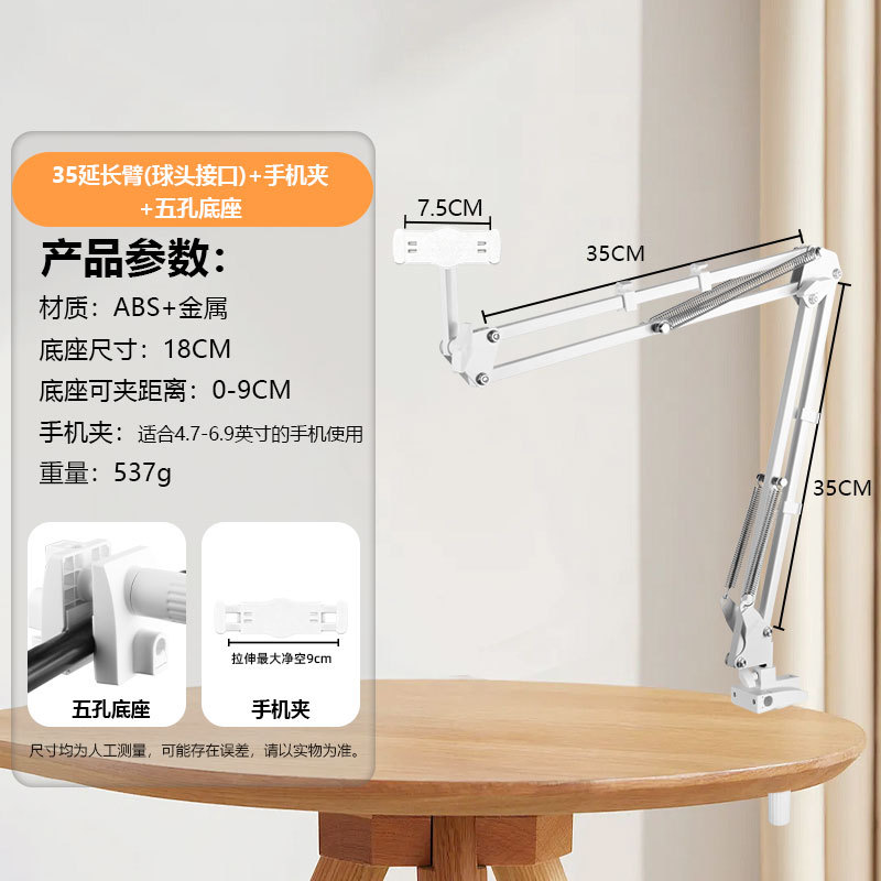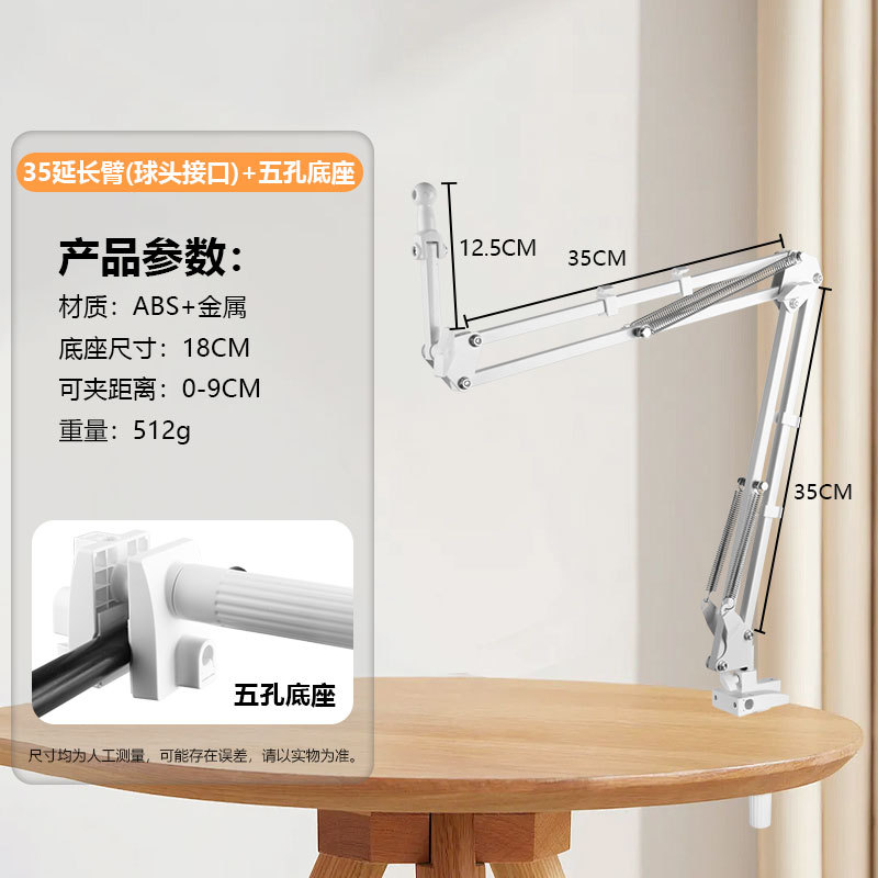 휴대폰 거치대 라이브 방송용 연장형 35cm 캔틸레버형 침대 옆 탁상용 접이식 텔레스코픽 클립형 라이브 방송 거치대