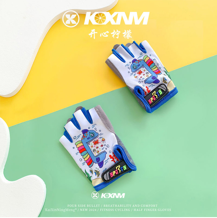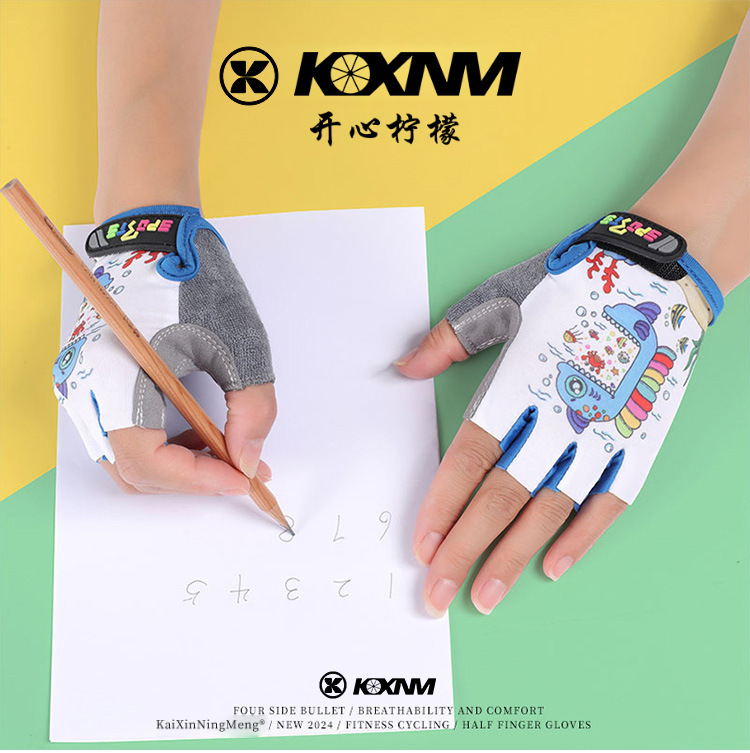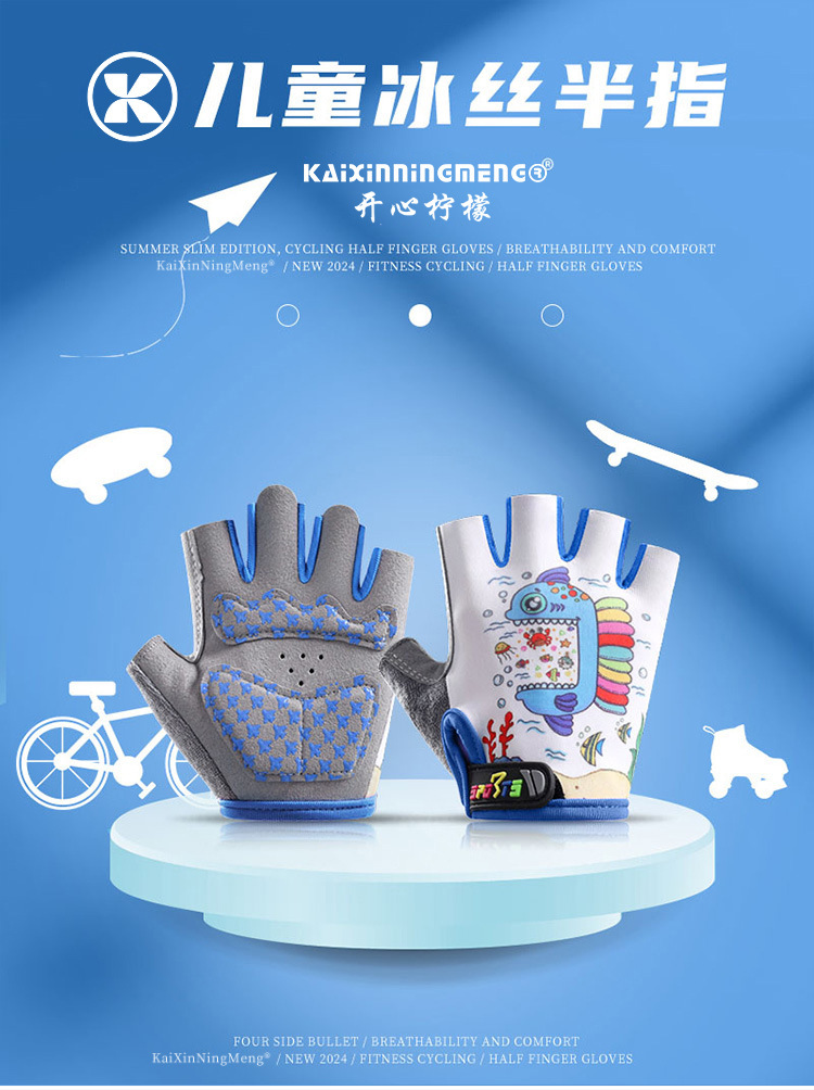 봄과 여름 어린이 얼음 실크 반 손가락 장갑 얇은 통기성 자전거 롤러 스케이트 밸런스 자동차 미끄럼 방지 라이딩 남녀 스포츠