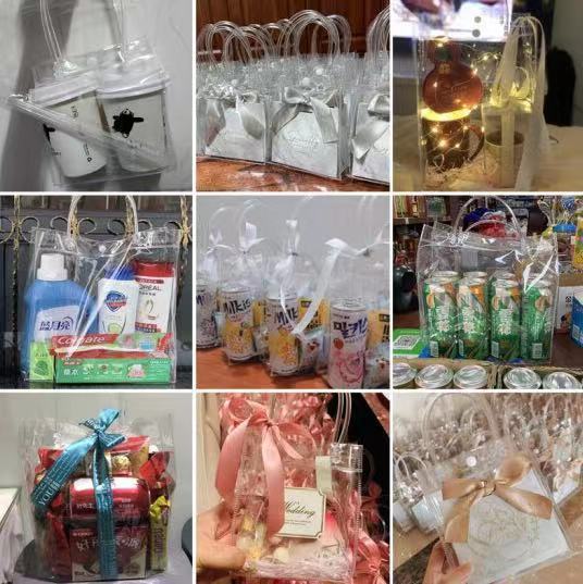 PVC 투명 핸드백 선물 웨딩 기념품 포장 가방 재고 플라스틱 선물 가방 선물 가방 PVC스토어 가기