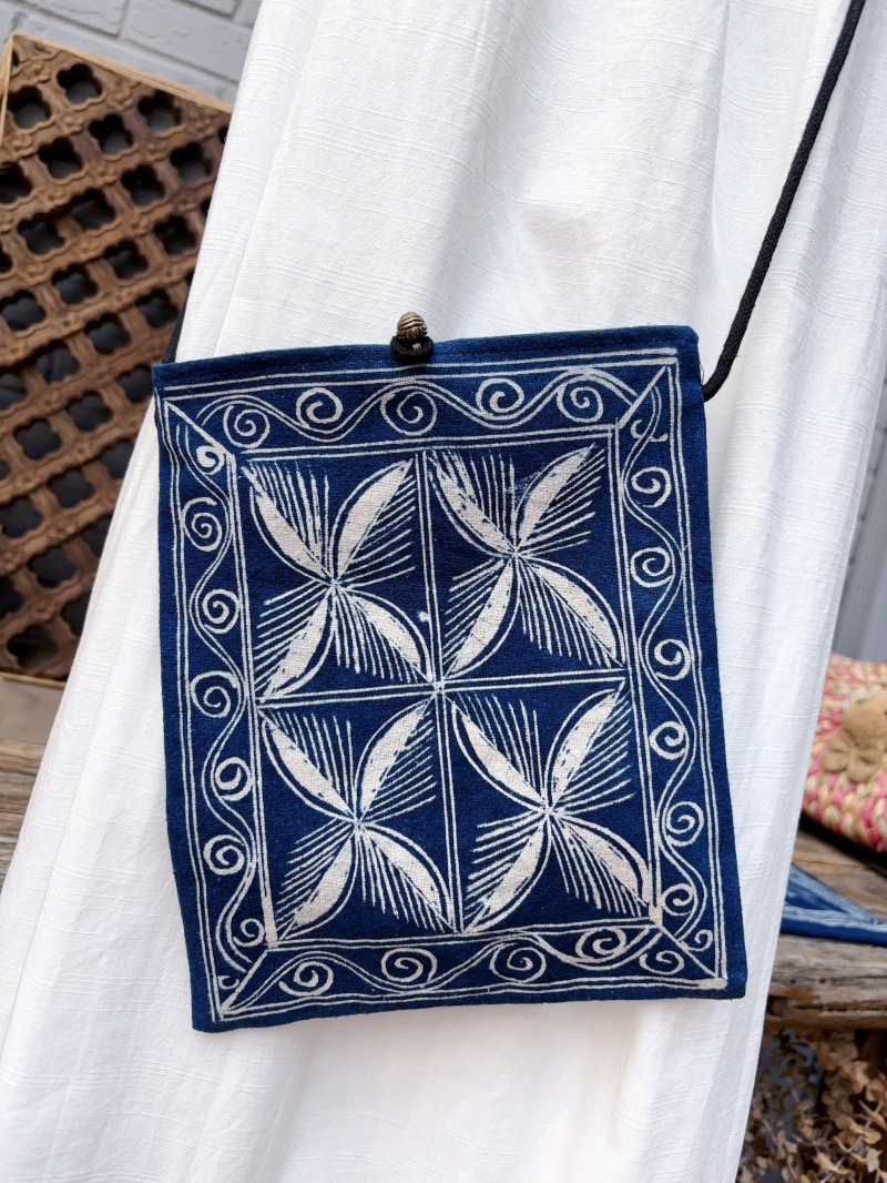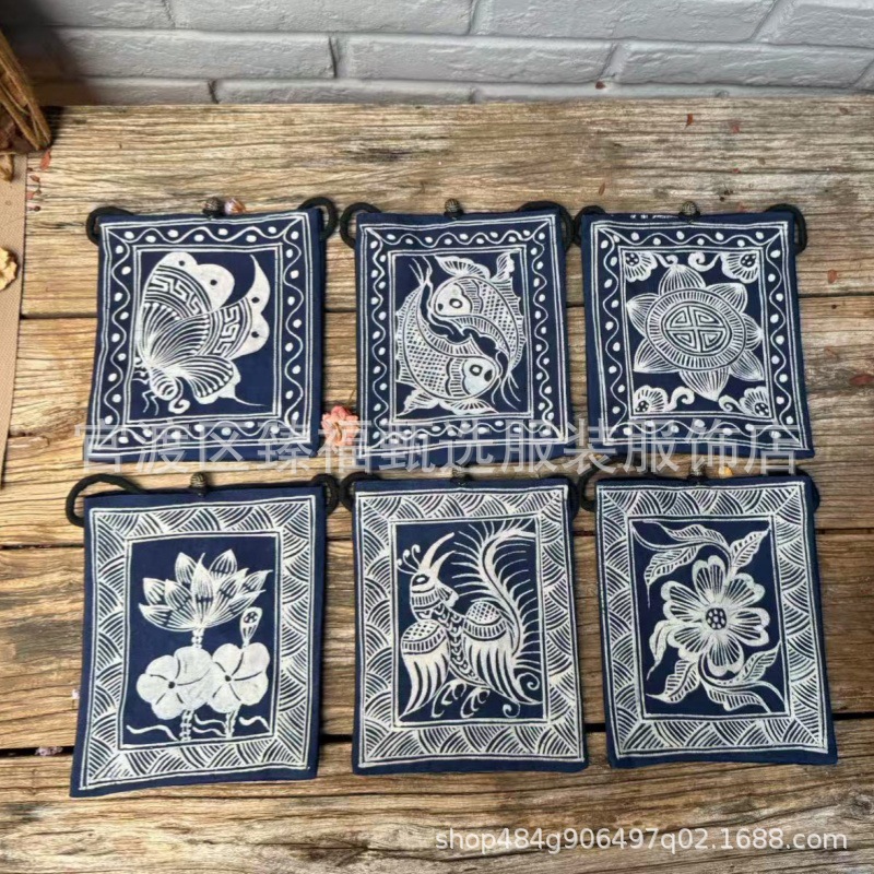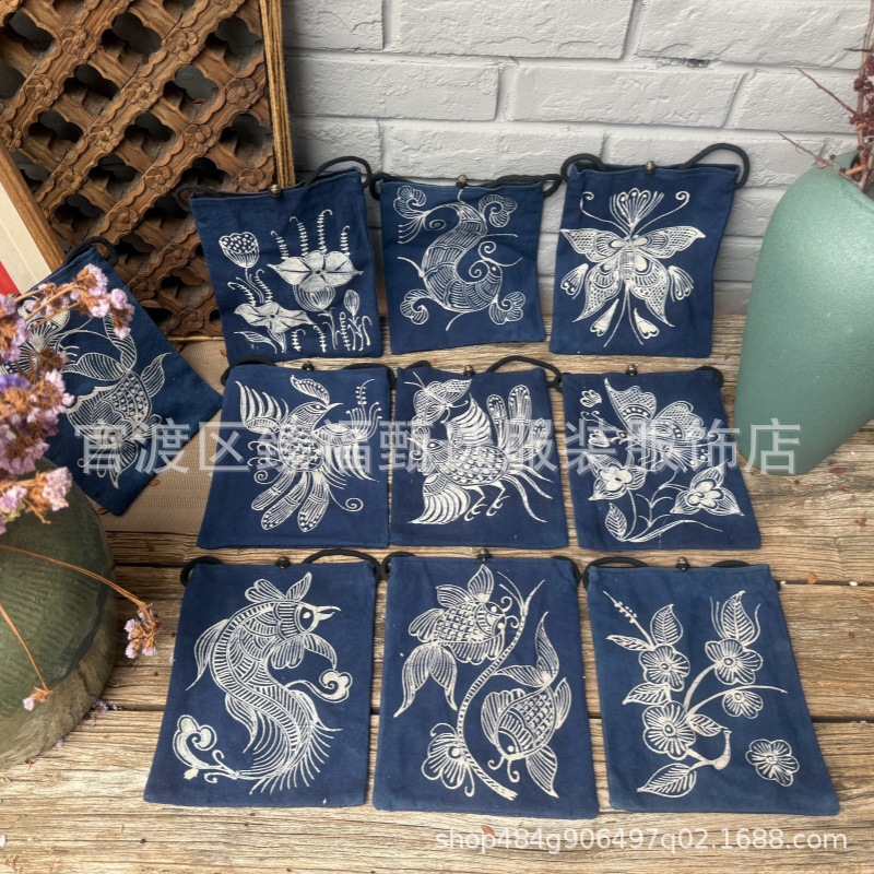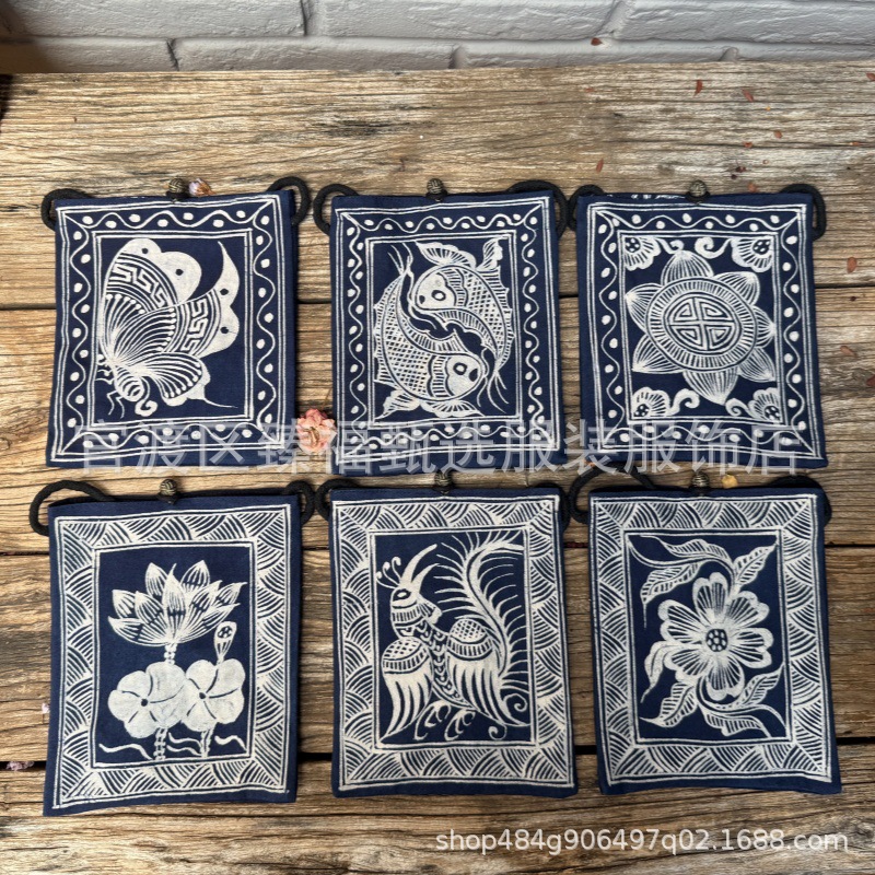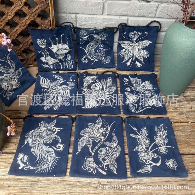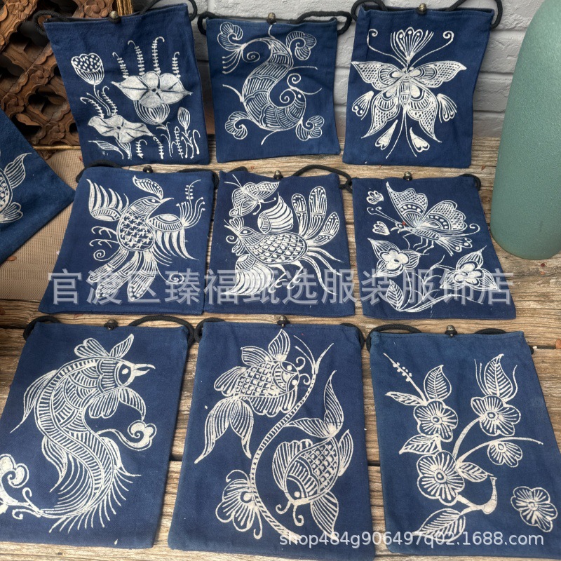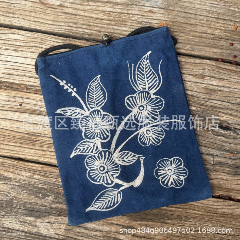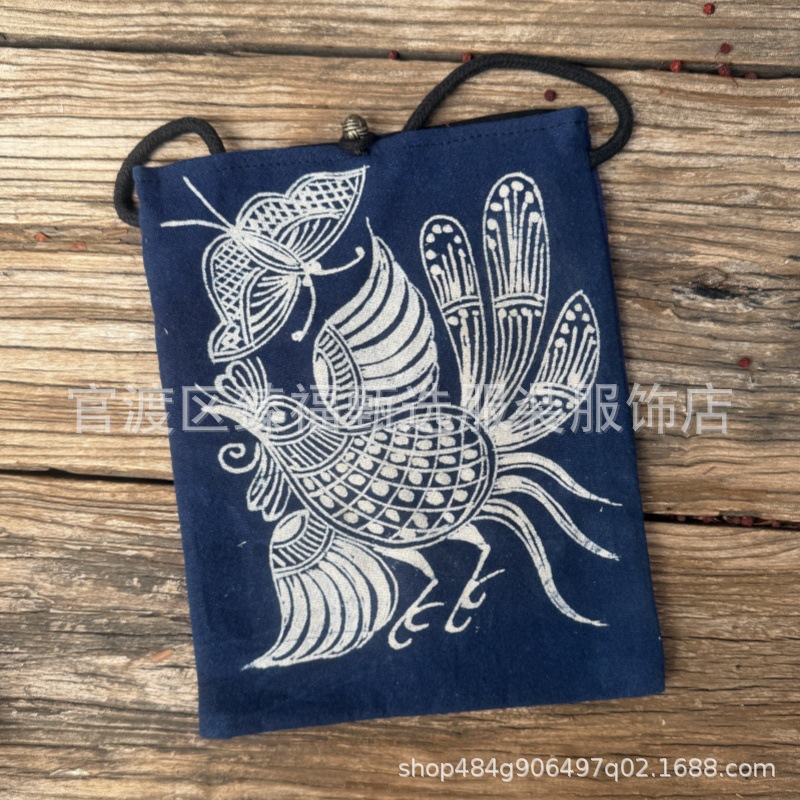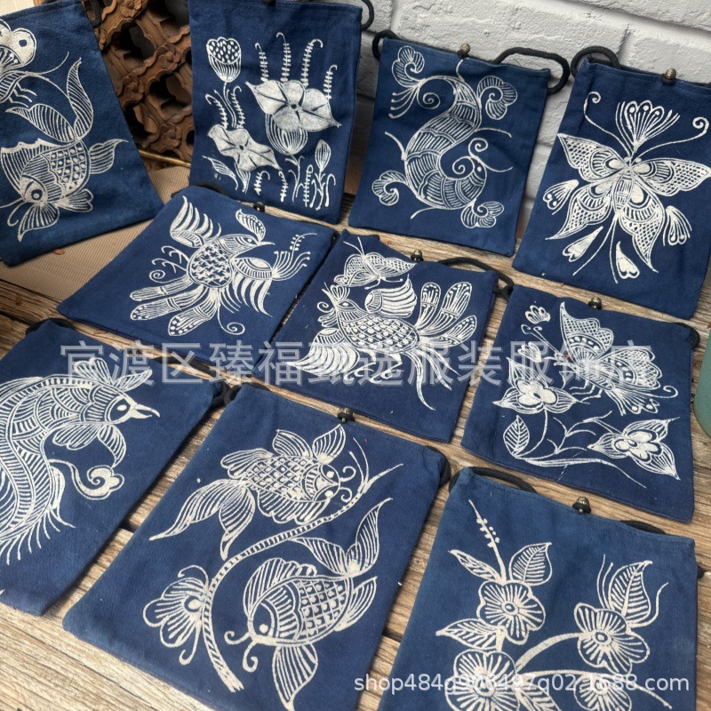 Yunnan Dali Lijiang Guizhou 관광 문화 창조적 인 왁스 염색 파란색과 흰색 염색 잔디 식물 염색 거친 천 메신저 가방