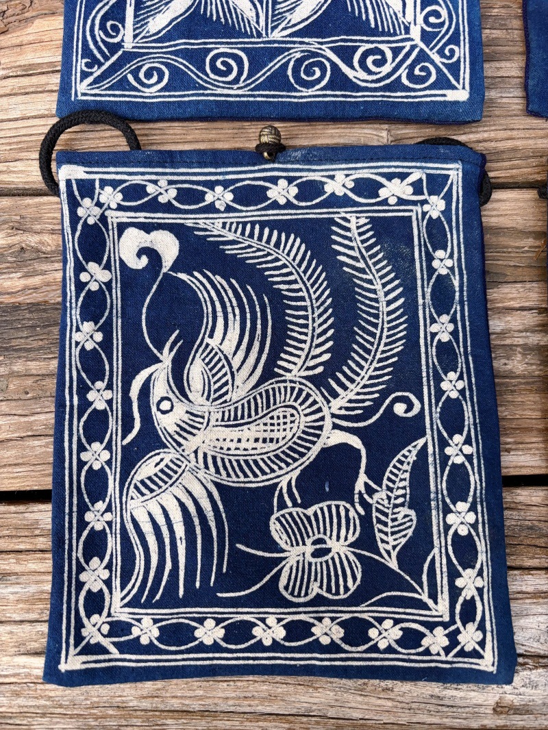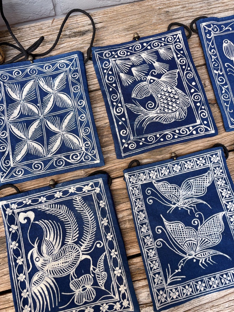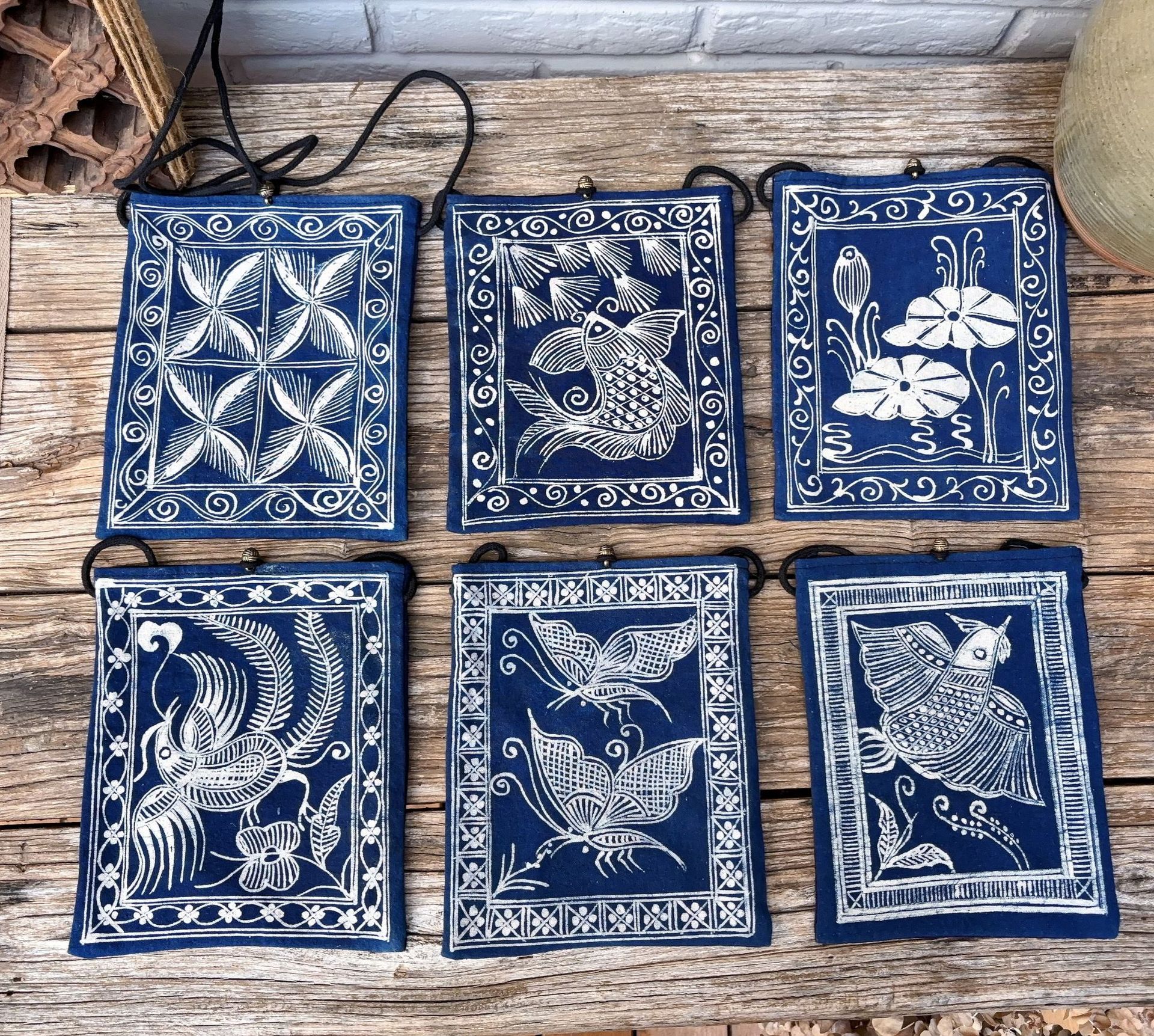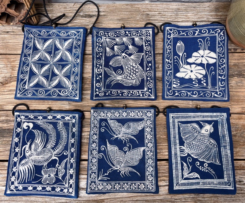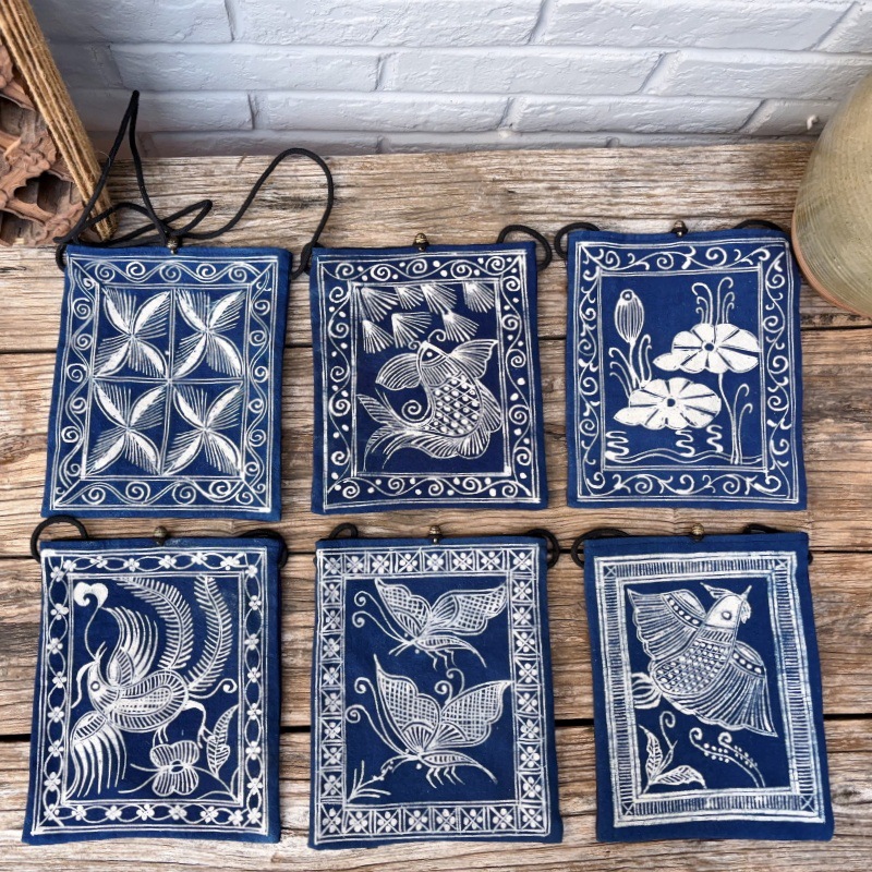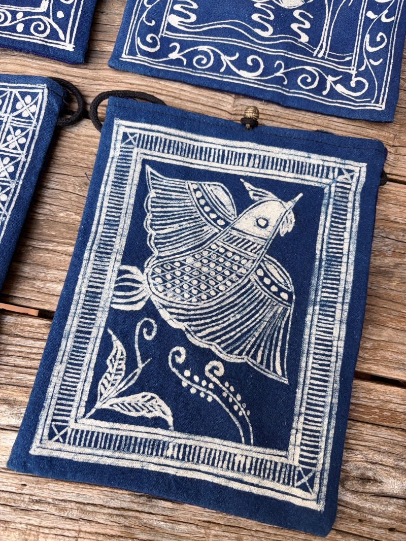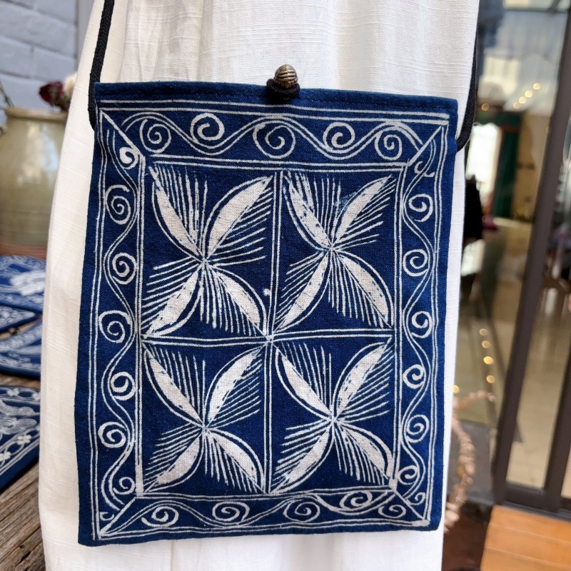 Yunnan Dali Lijiang Guizhou 관광 문화 창조적 인 왁스 염색 파란색과 흰색 염색 잔디 식물 염색 거친 천 메신저 가방