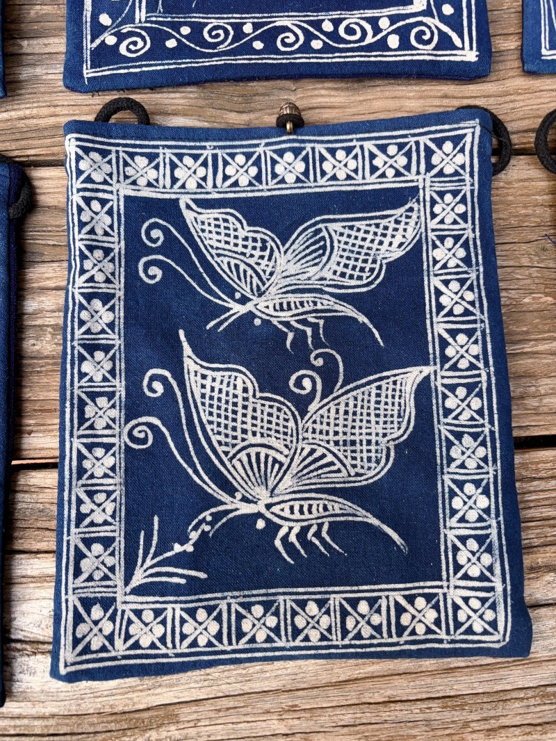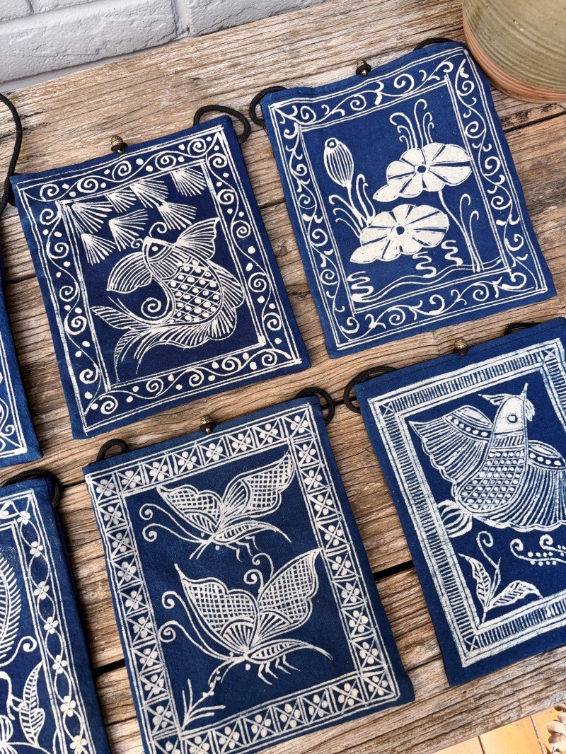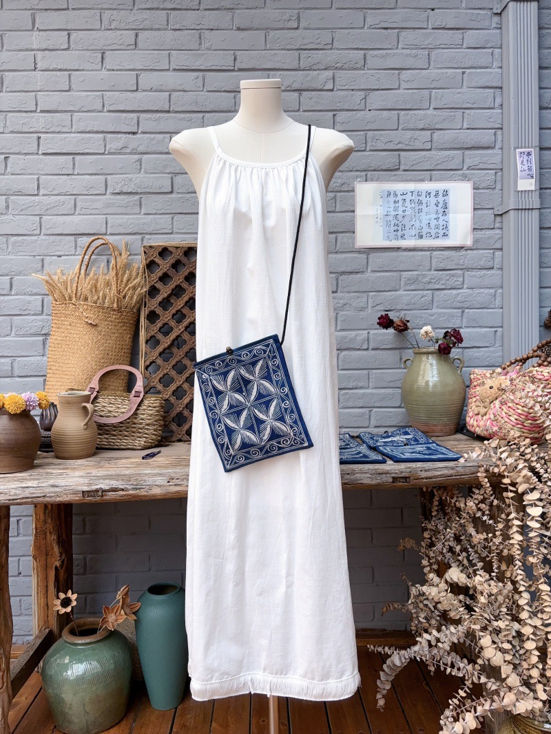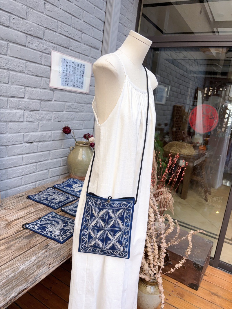 Yunnan Dali Lijiang Guizhou 관광 문화 창조적 인 왁스 염색 파란색과 흰색 염색 잔디 식물 염색 거친 천 메신저 가방스토어 가기