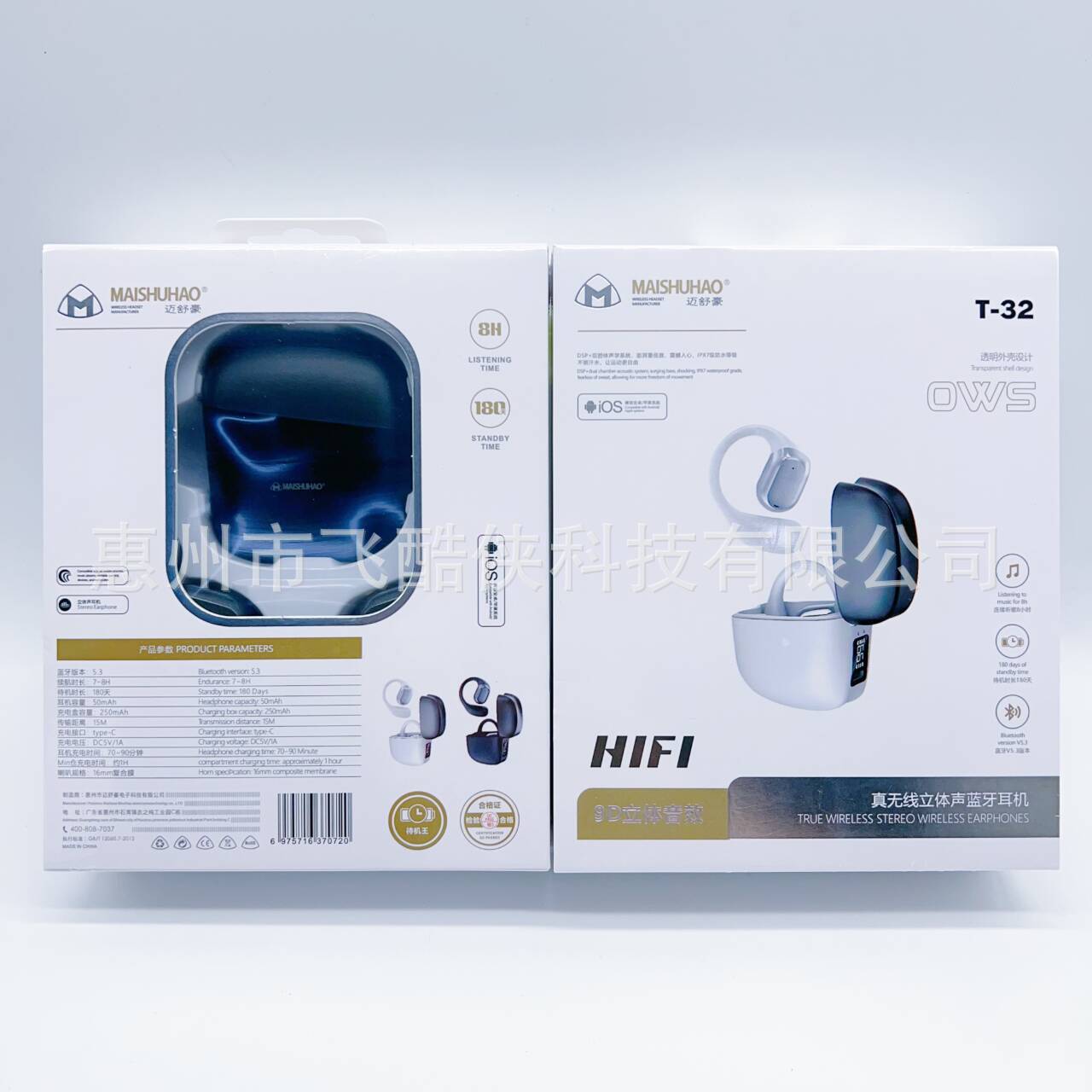 • Maishuhao T32: 디지털 디스플레이 골전도 블루투스 [흰색/검정색 임의 색상]