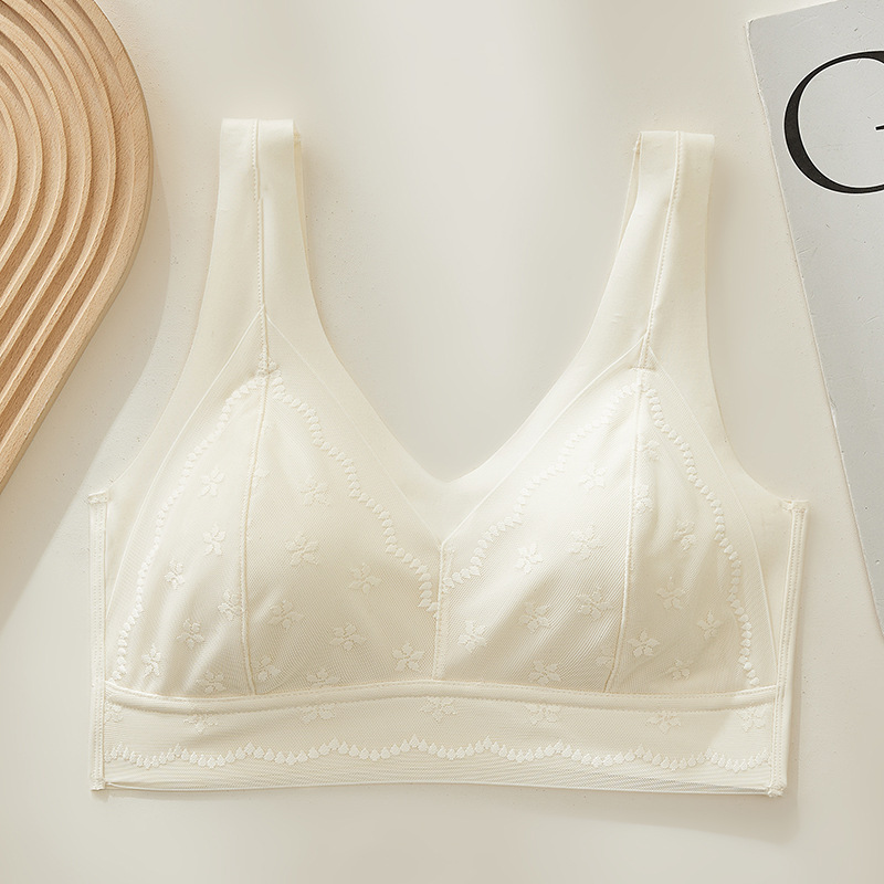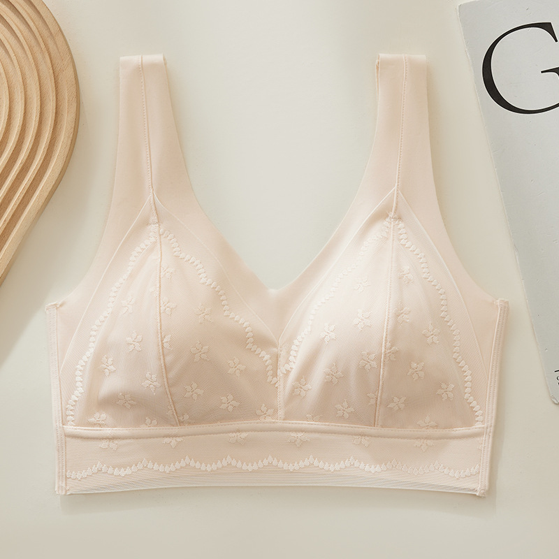 반 여름 팁 ~ 프랑스 아이스 실크 포장 가슴 브래지어 스트랩 뷰티 백 원피스 고정 삼각형 컵 메쉬 깊은 v-neck