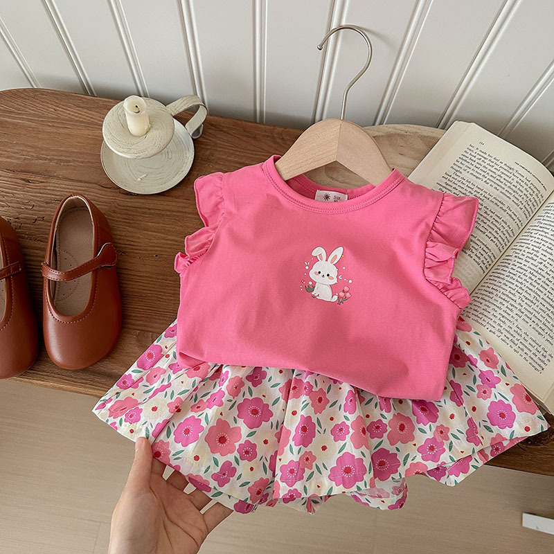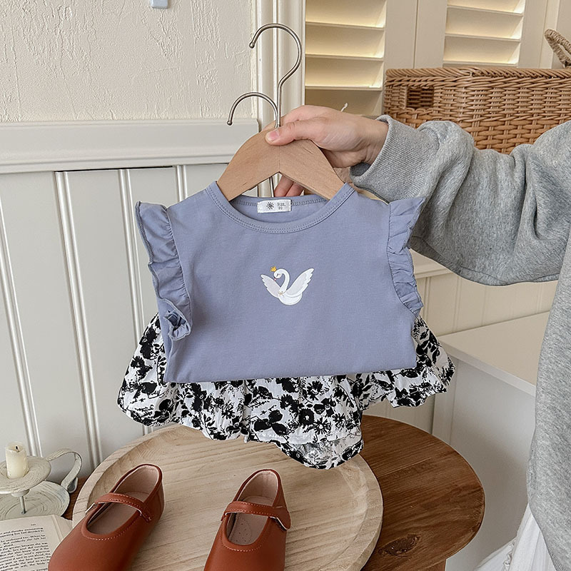 유럽과 미국 스타일의 여아 반팔 세트 26 여름 신상 아동복 도매 여아 나비 프린트 티셔츠 투피스 세트