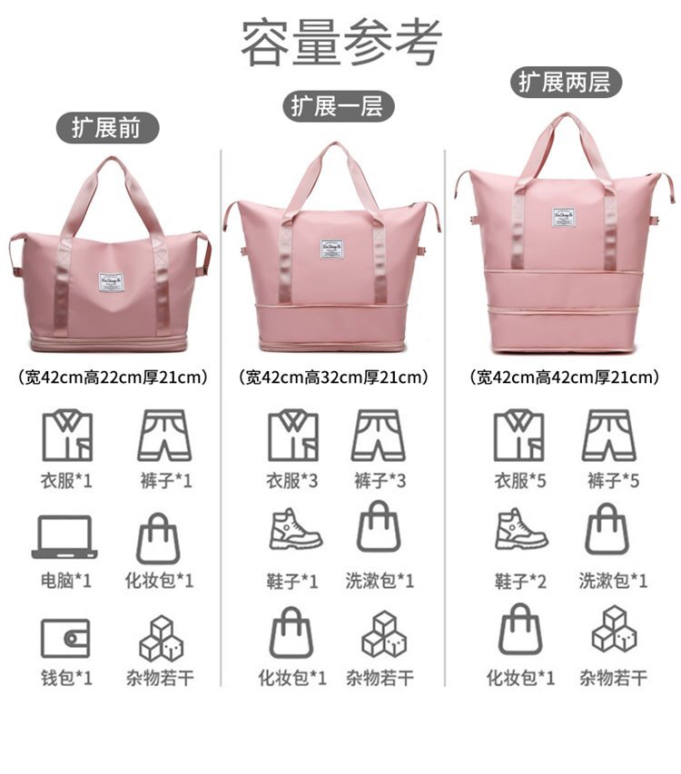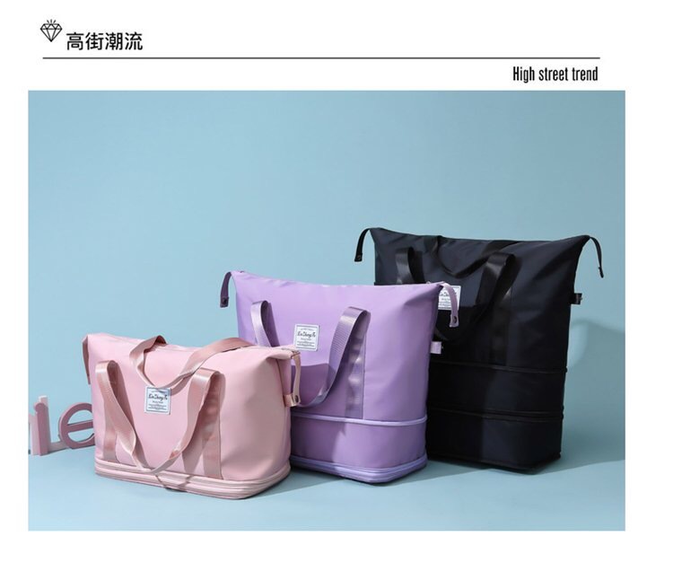 여행 가방 대용량 더블 확장 휴대용 스포츠 피트니스 가방 학생 수하물 가방 여행 보관 가방 습식 및 건조 분리