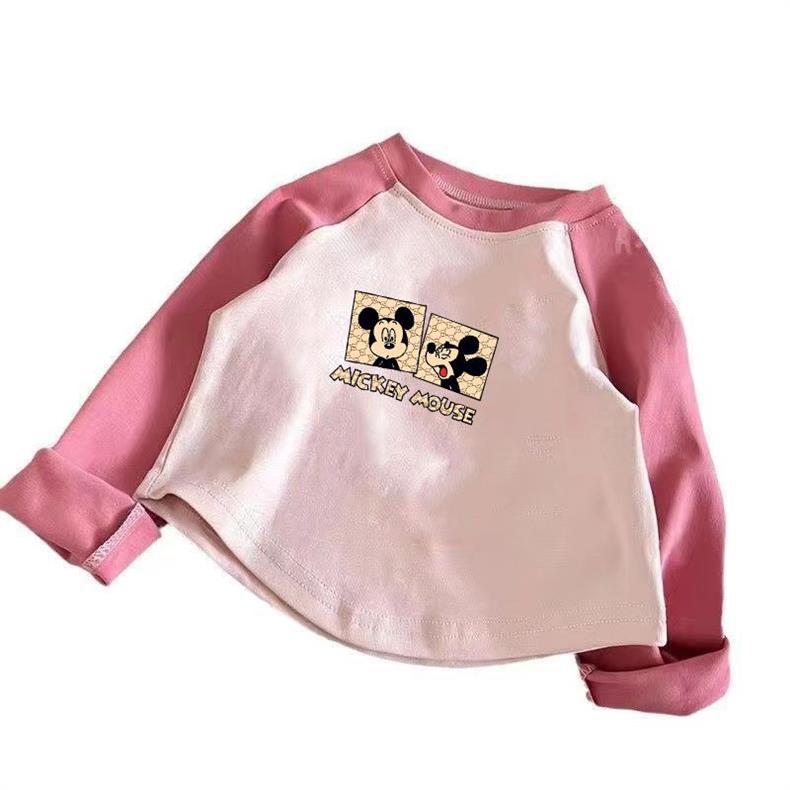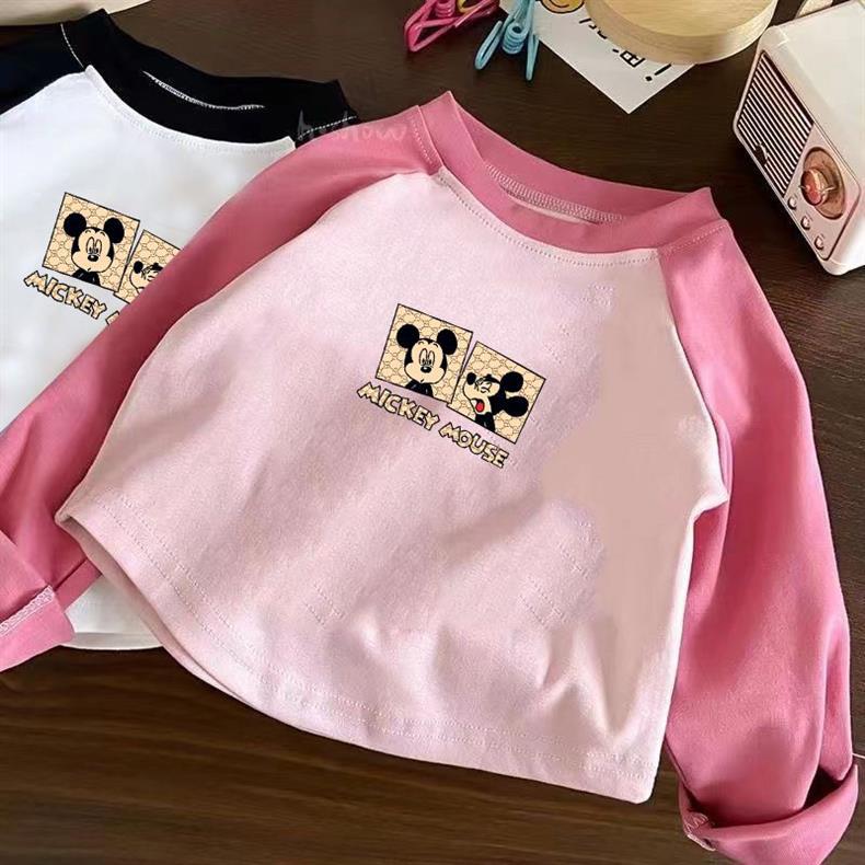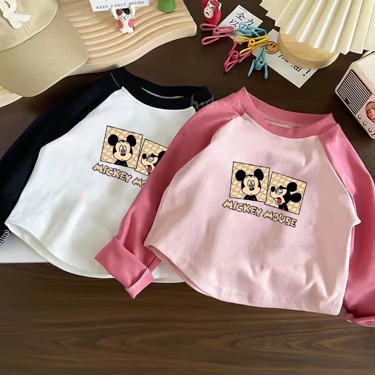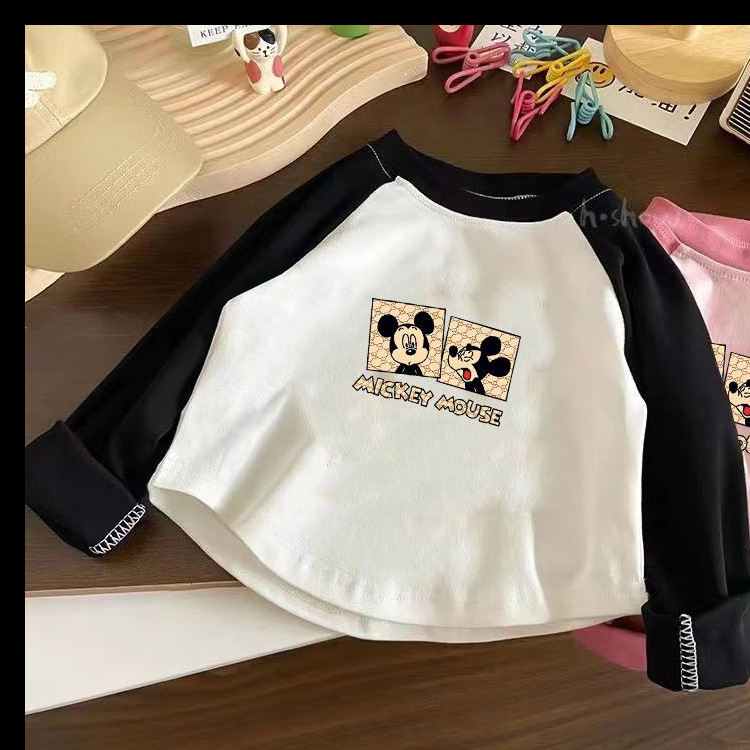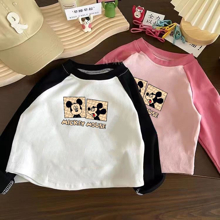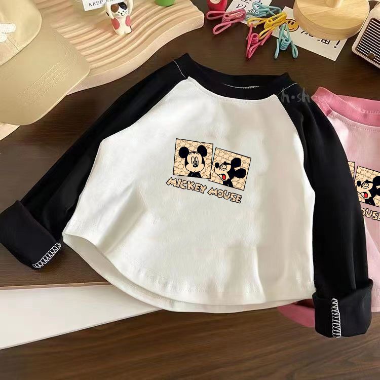 어린이 면화 가을 뉴 라글란 긴 소매 둥근 목 티셔츠 대조 컬러 소녀 만화 최고 아기 서양식 바닥스토어 가기