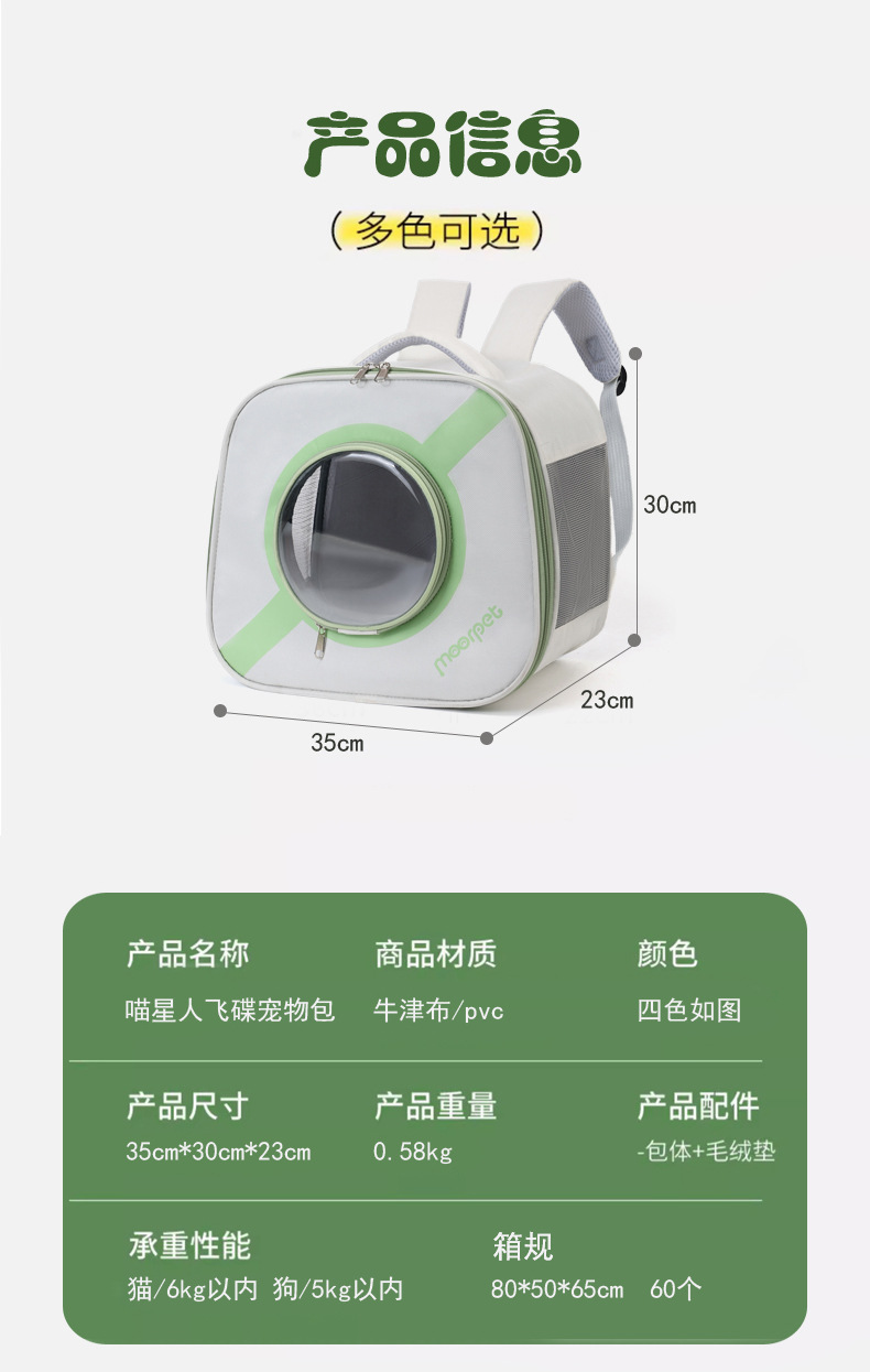 Mopet Moorpet 공장 직접 공급 UFO 가방 고양이 가방 애완 동물 가방 배낭 통기성 휴대용 접이식 고양이 가방스토어 가기