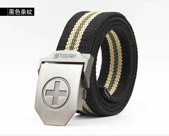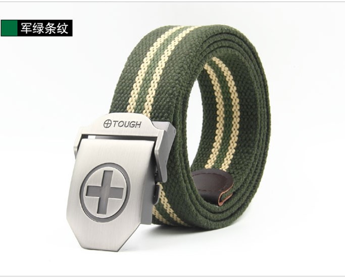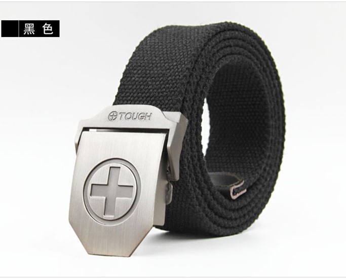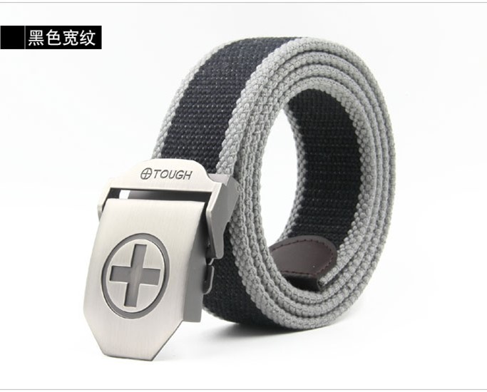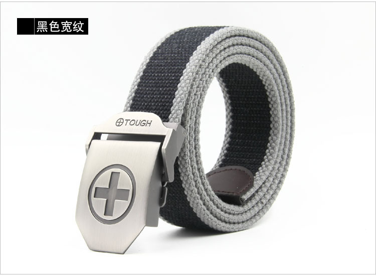 크로스 버클 TOUGH 캔버스 벨트 남성용 캐주얼 벨트 한국식 청소년 학생 군사 훈련 짠 바지 벨트