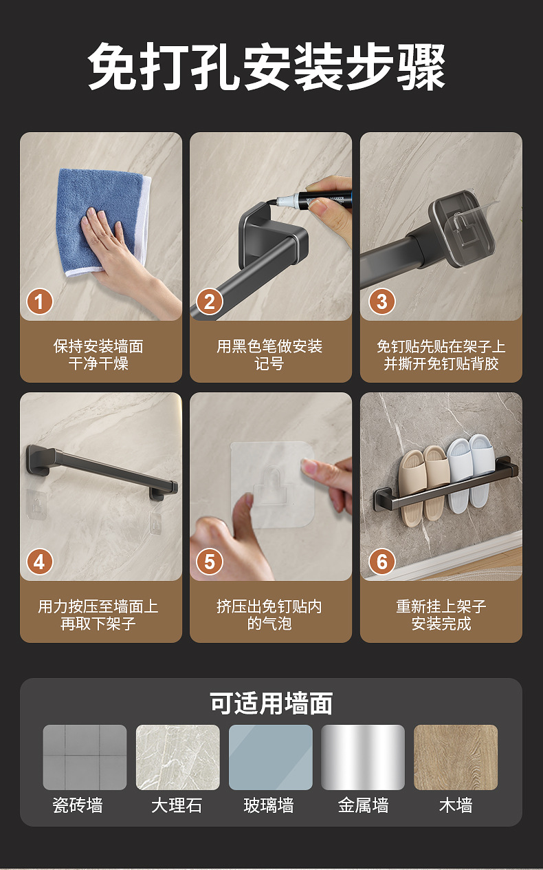 욕실 슬리퍼 랙 펀치없는 벽걸이 화장실 벽 배수 신발 랙 보관 랙