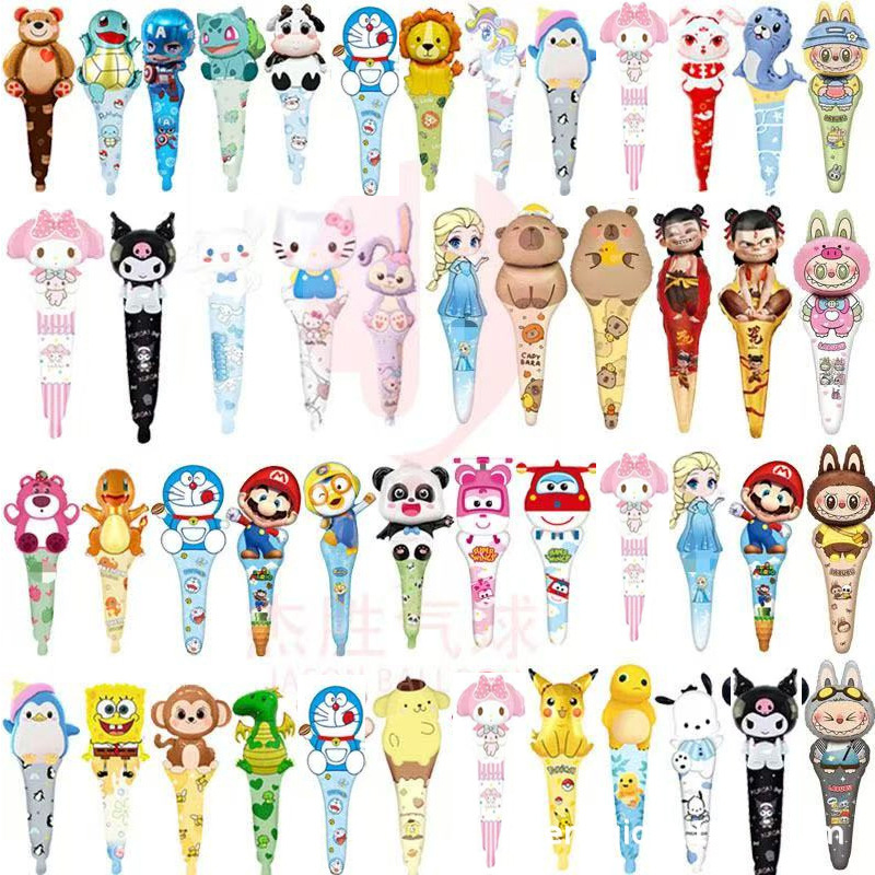 동물 만화 휴대용 스틱 풍선 스틱 스톨 푸시 알루미늄 필름 풍선 어린이 타격 스틱 손 스틱 도매스토어 가기