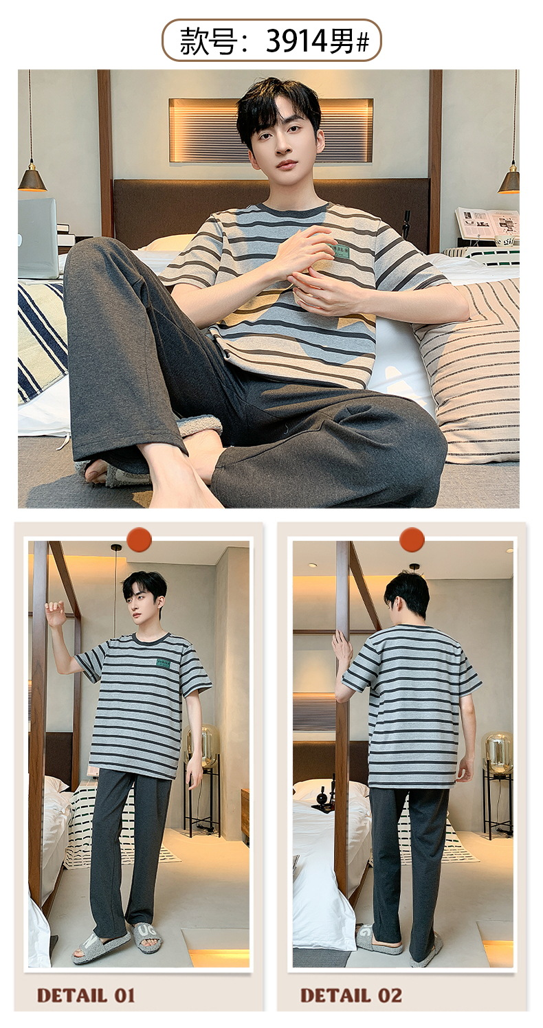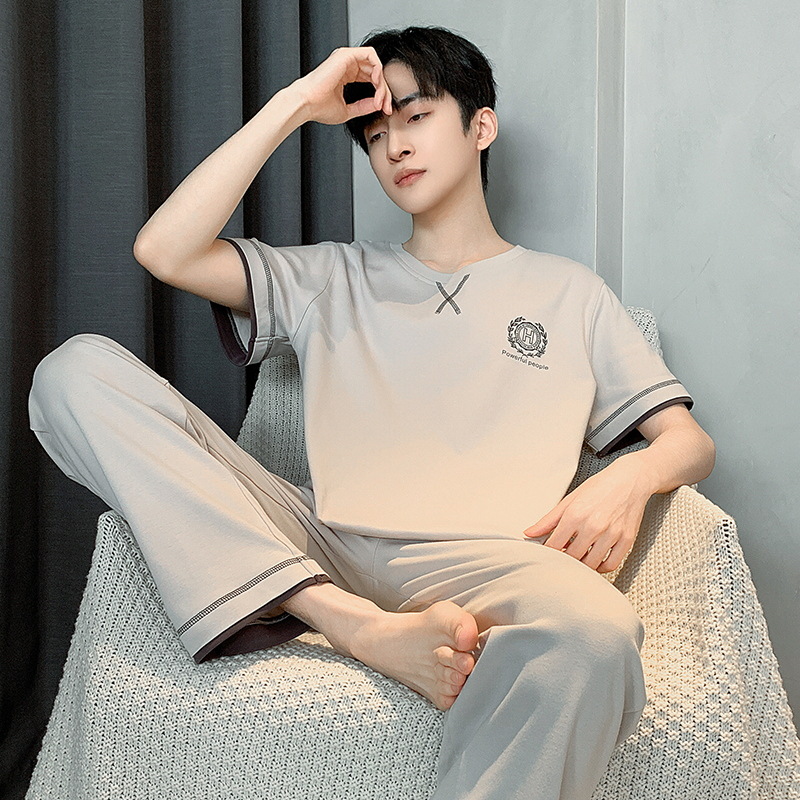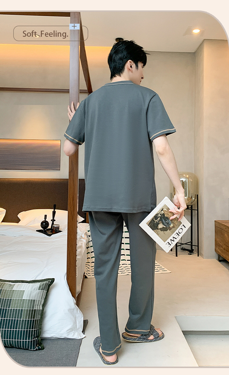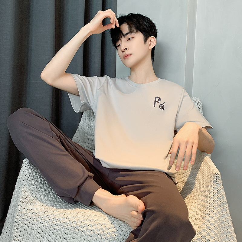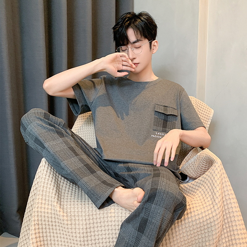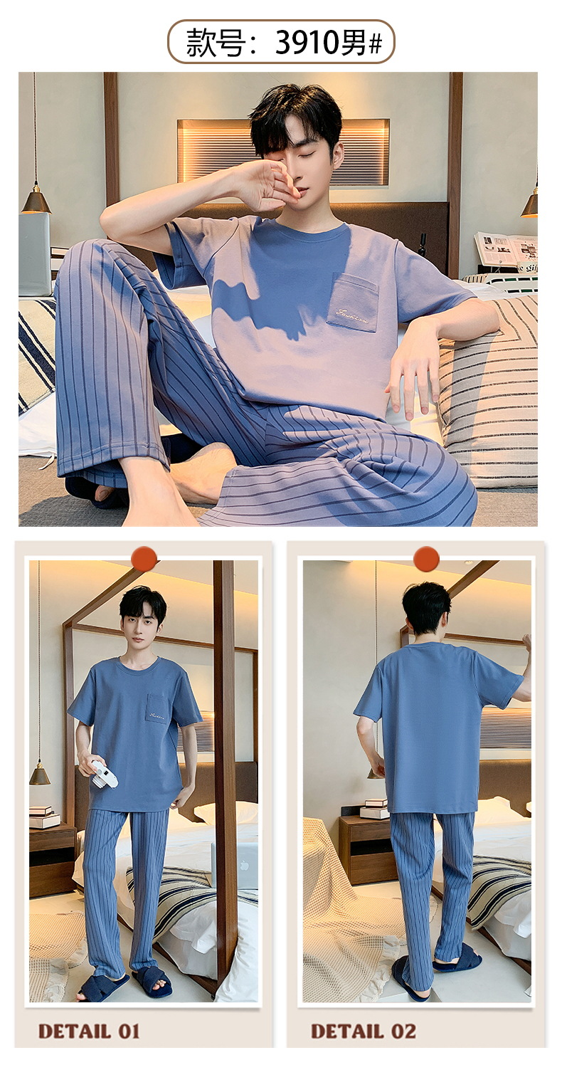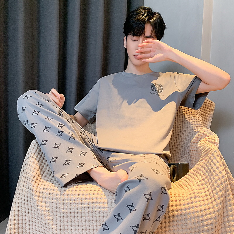 잠옷 남성용 여름면 얇은 반팔 바지 세트 남성용 캐주얼 플러스 사이즈 겉옷 홈웨어 공장 도매스토어 가기