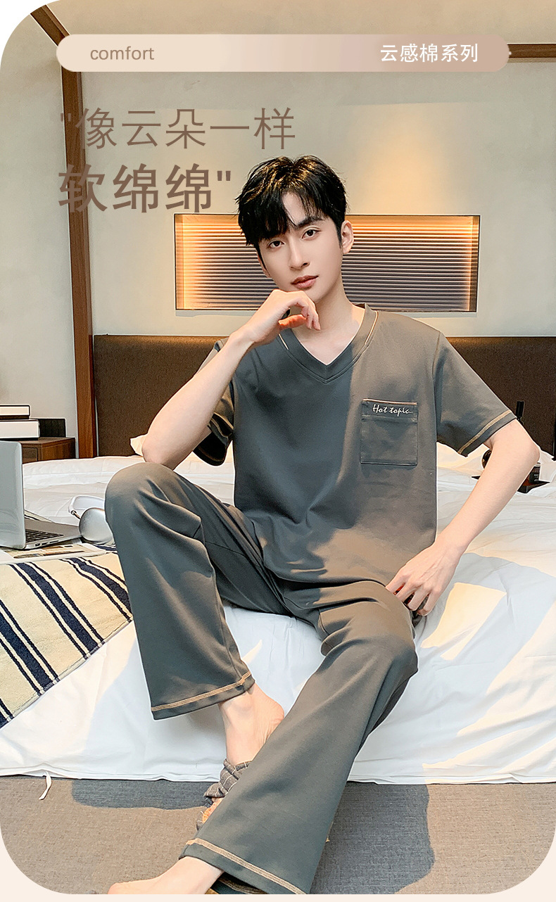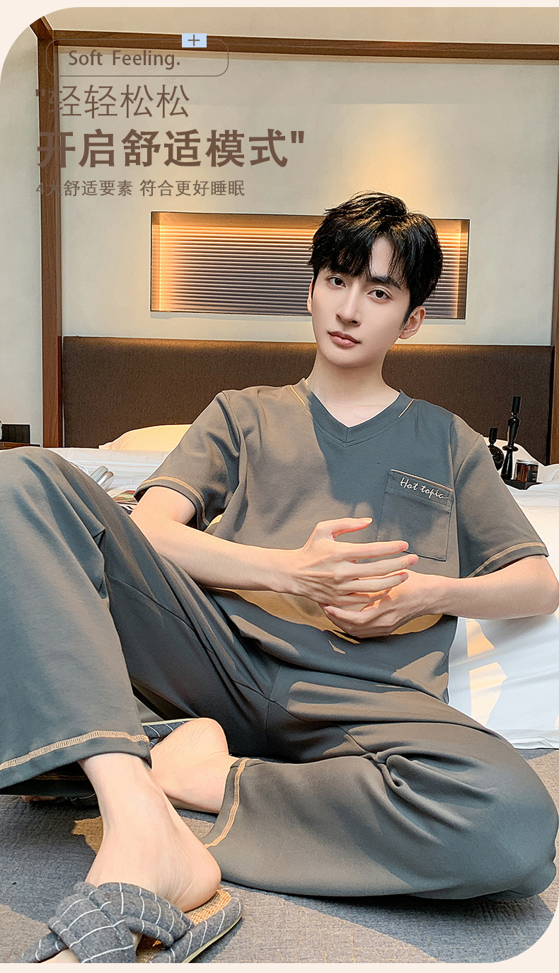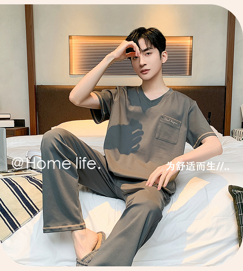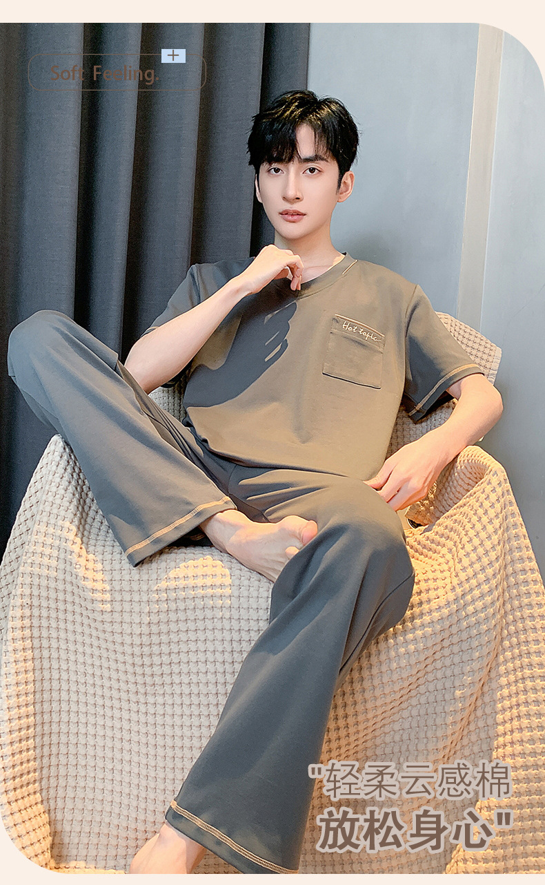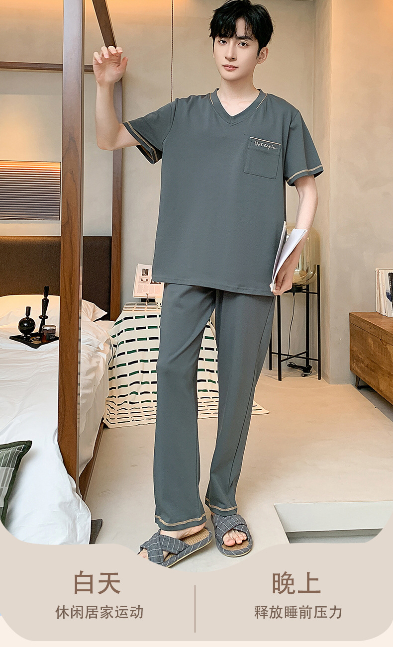 잠옷 남성용 여름면 얇은 반팔 바지 세트 남성용 캐주얼 플러스 사이즈 겉옷 홈웨어 공장 도매스토어 가기
