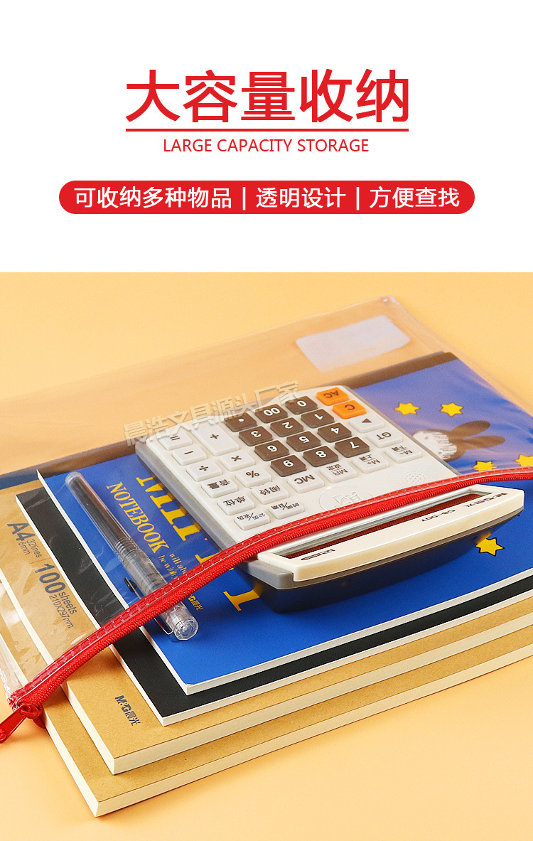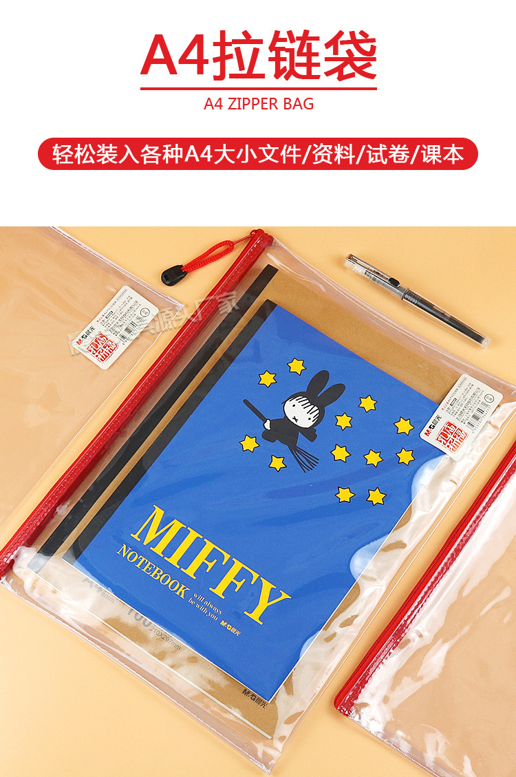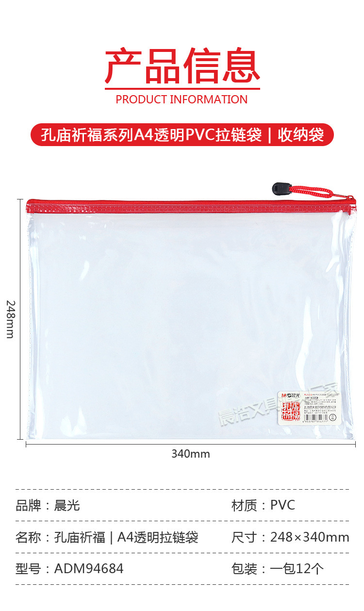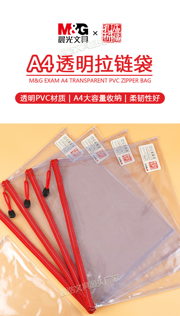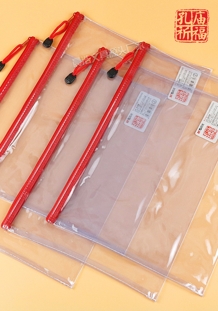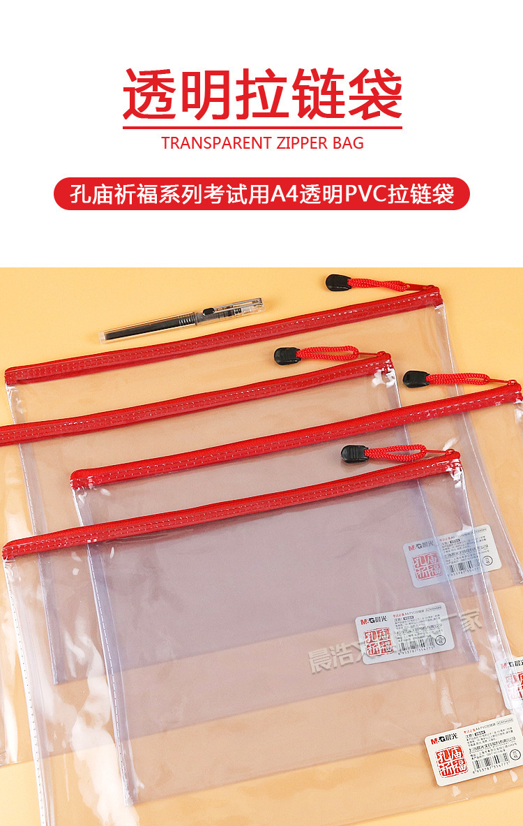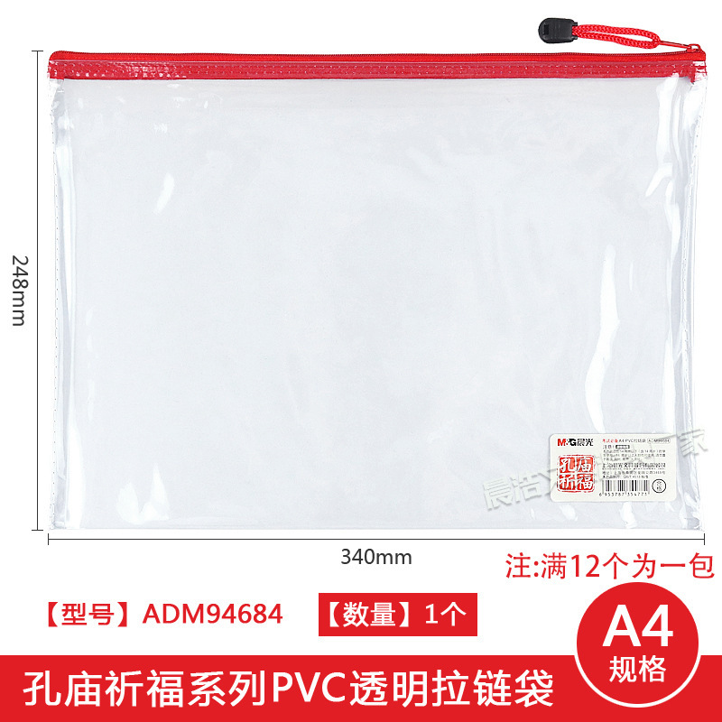 Chenguang 공자 사원기도 A4 지퍼 가방 학생 시험 보관 가방 사무실 PVC 투명 파일 가방 ADM94684스토어 가기