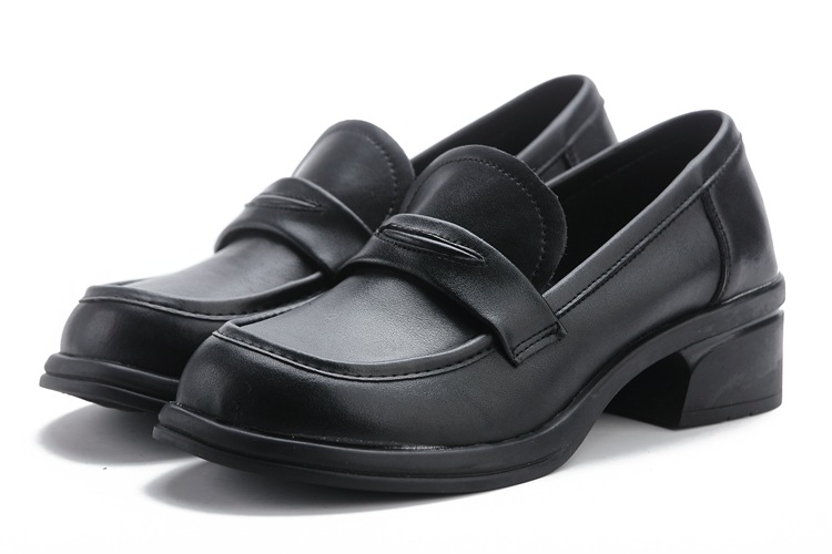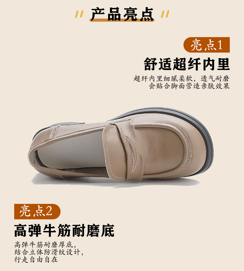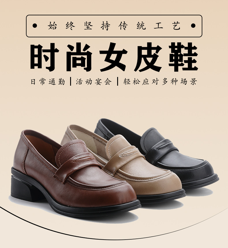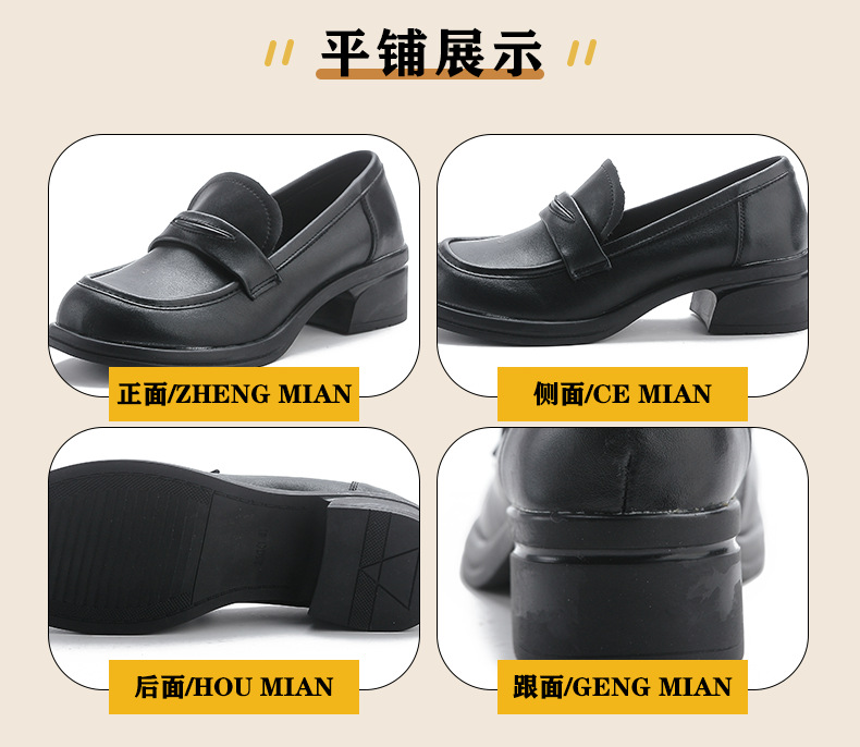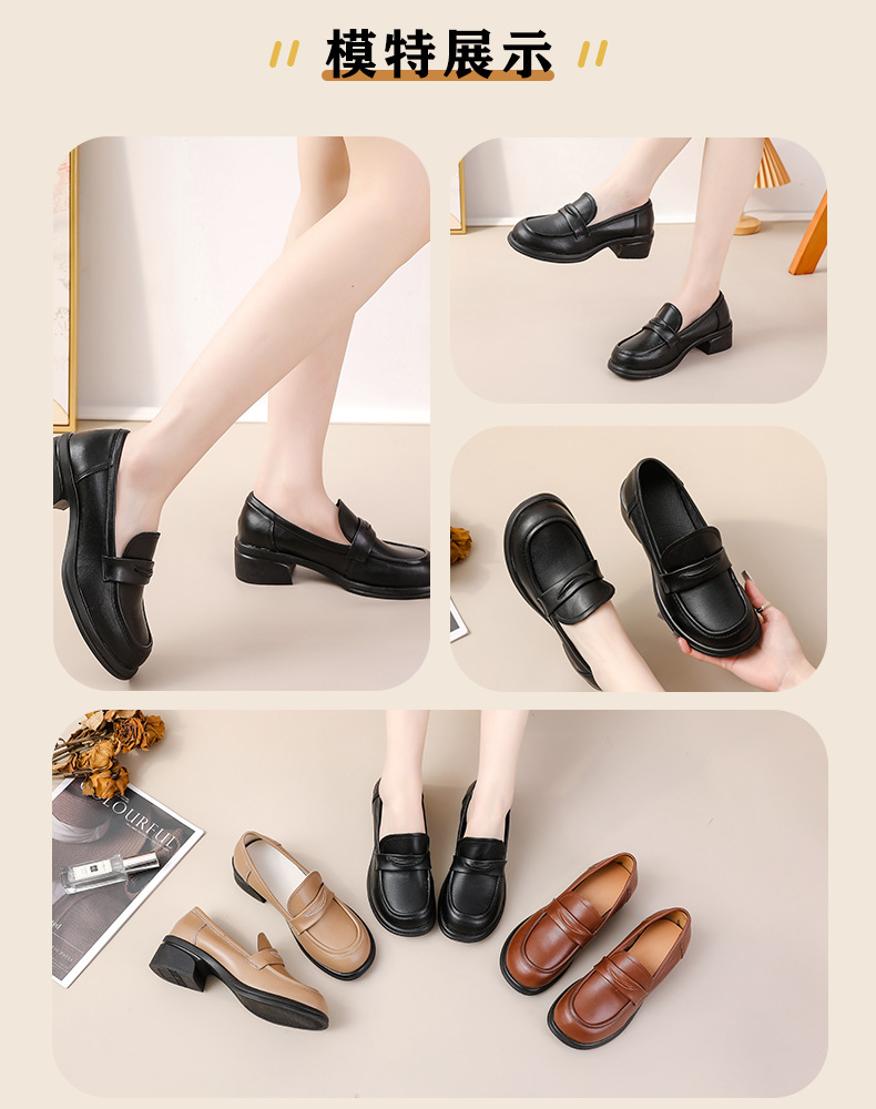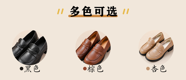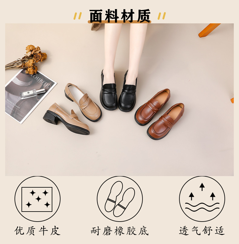Cowhide 로퍼 여성 신발 정품 가죽 로우 탑 청키 힐 미드 힐 부드러운 바닥 부드러운 표면 라운드 토 편안한 올 매치 캐주얼 사무실