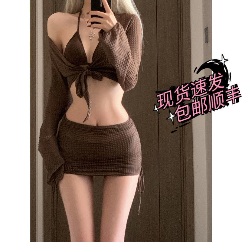 Mosricci 유럽과 미국 스타일의 순수한 욕망 섹시한 가방 치마 블라우스 삼각형 비키니 분할 수영복 여성 게으른 태국스토어 가기