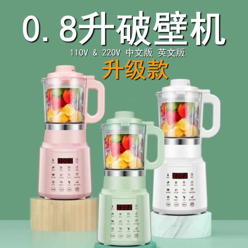 热饮0.7L、冷饮打果汁0.8L、高硼硅玻璃搅拌杯可分拆使用和清洗。110V英文版兼容100-125V 50-60Hz电压;220V兼容220-240V 50-60Hz电压。