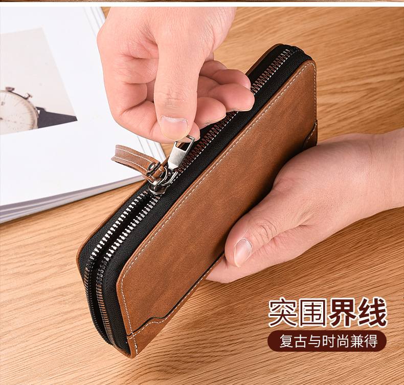 새로운 남자 긴 지퍼 지갑 멀티 카드 홀더 남자 지갑 간단한 가죽 클러치 대용량 남성 지갑스토어 가기