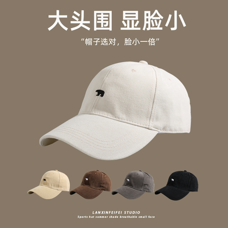 Abothexx 북극곰 수 놓은 큰 머리 둘레 모자 남성과 여성의 세련된 야구 모자는 얼굴을 작게 보이게합니다. 새 오리 혀 플러스 사이즈