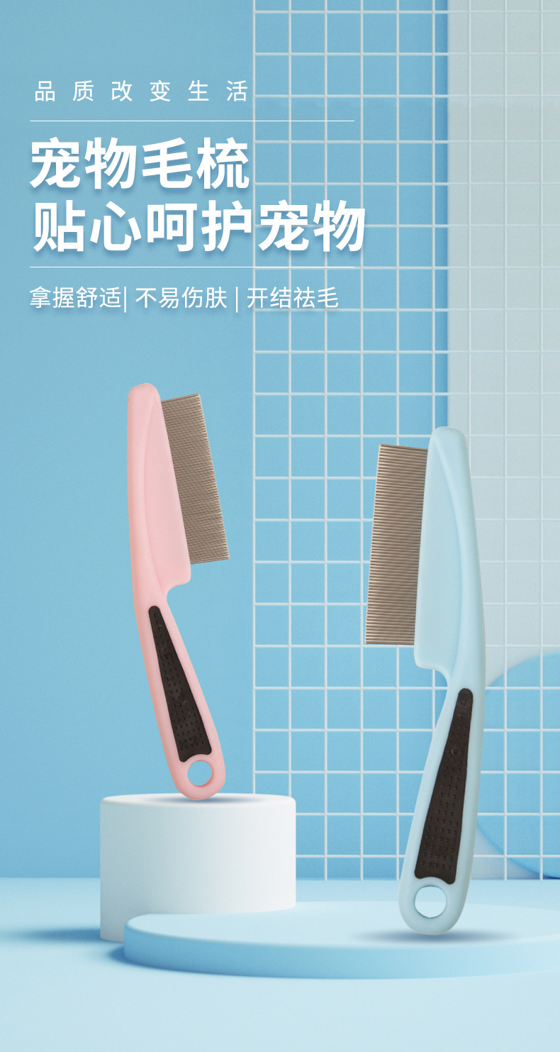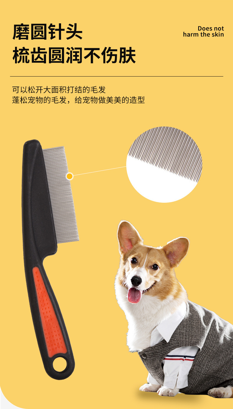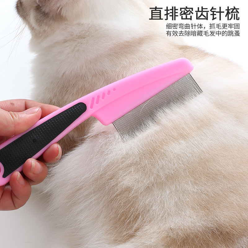 애완 동물 점프 빗 스테인레스 스틸 브러시 플라스틱 미끄럼 방지 빗 고양이 벼룩 제거 빗 바늘 빗 애완 동물 용품 도매스토어 가기