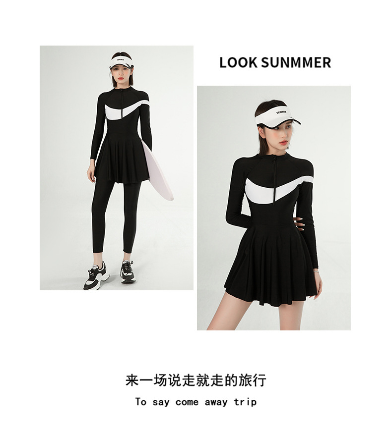 한국 플러스 사이즈 다이빙 세트 여성 스플릿 긴팔 수영복 2024 새로운 스포츠 바지 국경 도매 수영복스토어 가기