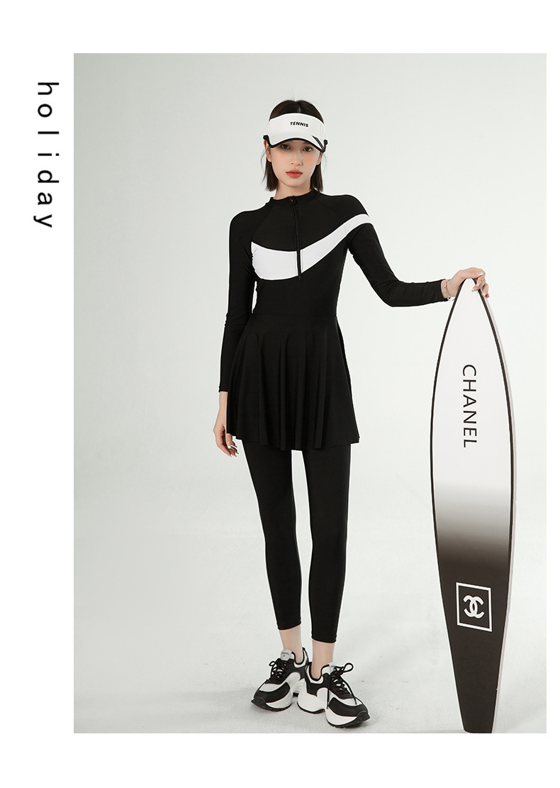 한국 플러스 사이즈 다이빙 세트 여성 스플릿 긴팔 수영복 2024 새로운 스포츠 바지 국경 도매 수영복