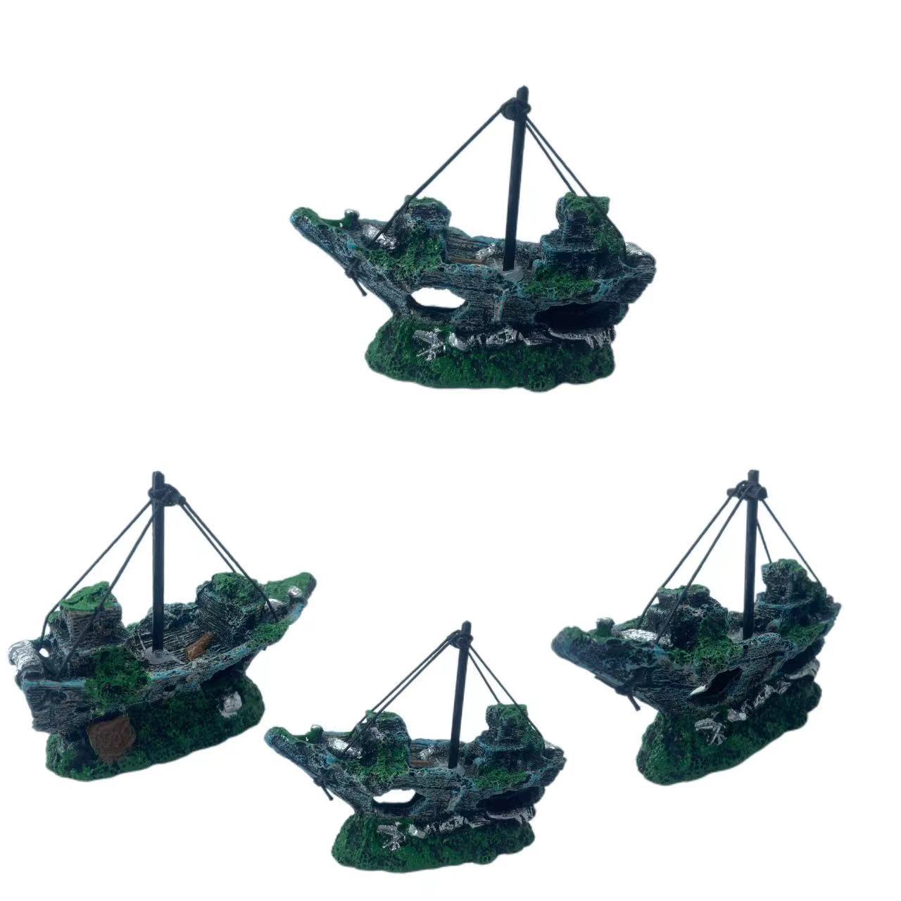 해적선 수족관 조경 장식 보트 대피소 집 장식 시뮬레이션 수지 공예 잔해 범선
