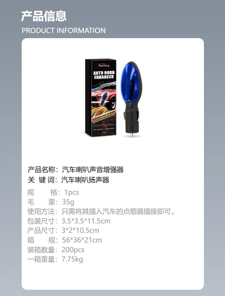 자동차 경적 소리 향상제 자동차 범용 방수 자동 경적 휘슬 스피커 Rayhong