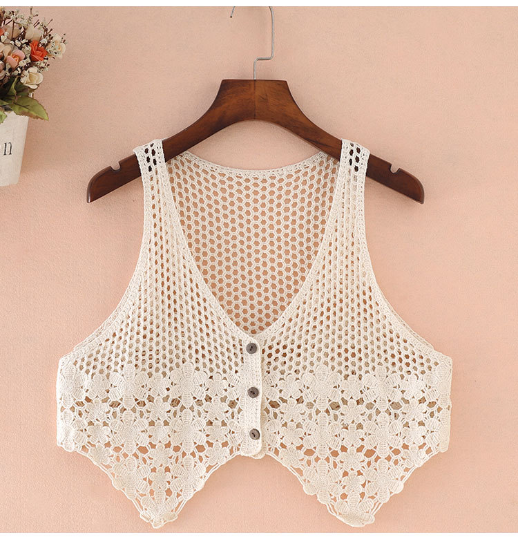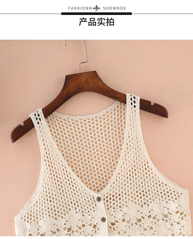 니트 조끼 중공 조끼 여성의 봄과 여름 짧은 조끼 조끼 민소매 코트 여성의 한국식 외부 뜨개질 카디건