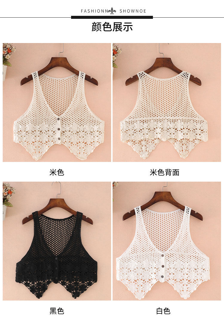 니트 조끼 중공 조끼 여성의 봄과 여름 짧은 조끼 조끼 민소매 코트 여성의 한국식 외부 뜨개질 카디건스토어 가기
